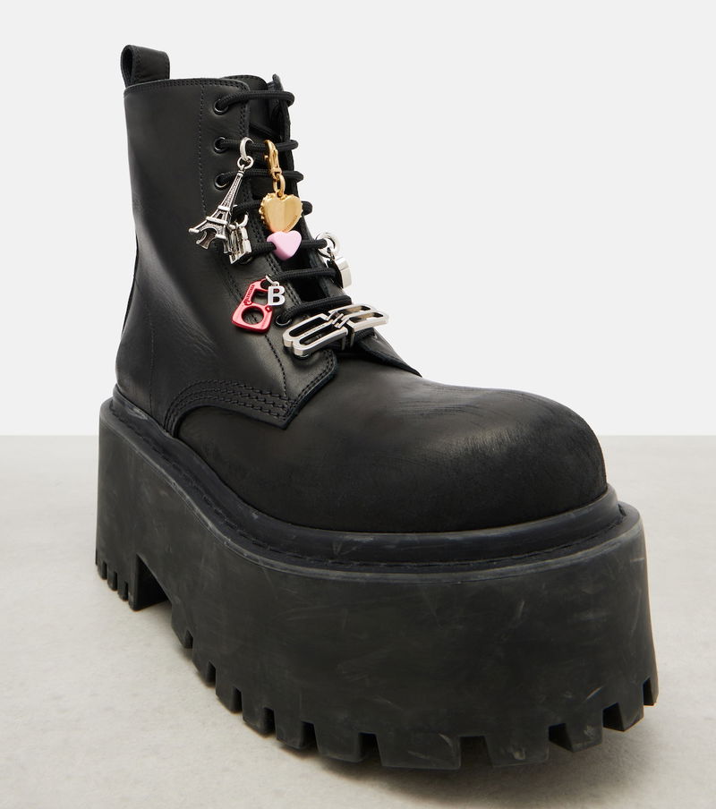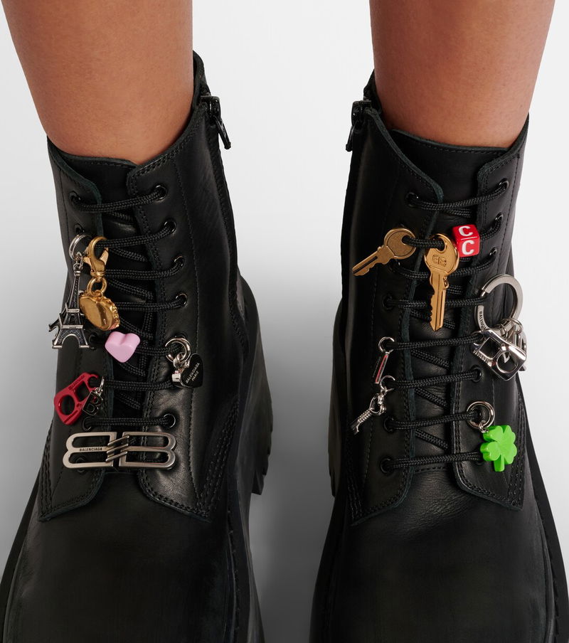 Step into statement style with these combat boots from Balenciaga. Crafted from supple leather, this pair is set atop thick platforms and boasts signature charm embellishments at the laces.
