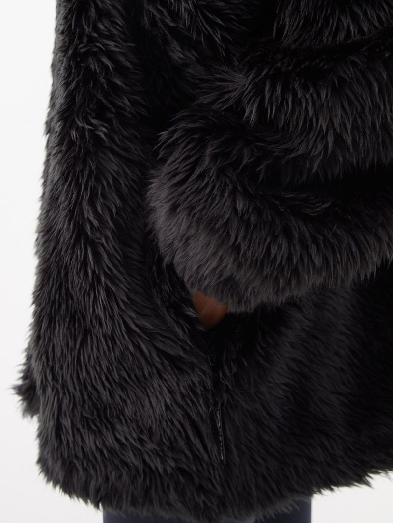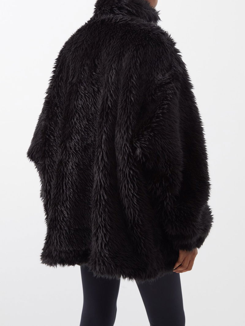 Balenciaga's black funnel-neck jacket is crafted in Italy from tactile faux fur and cut to an oversized silhouette, expressing Demna's subversive ethos.