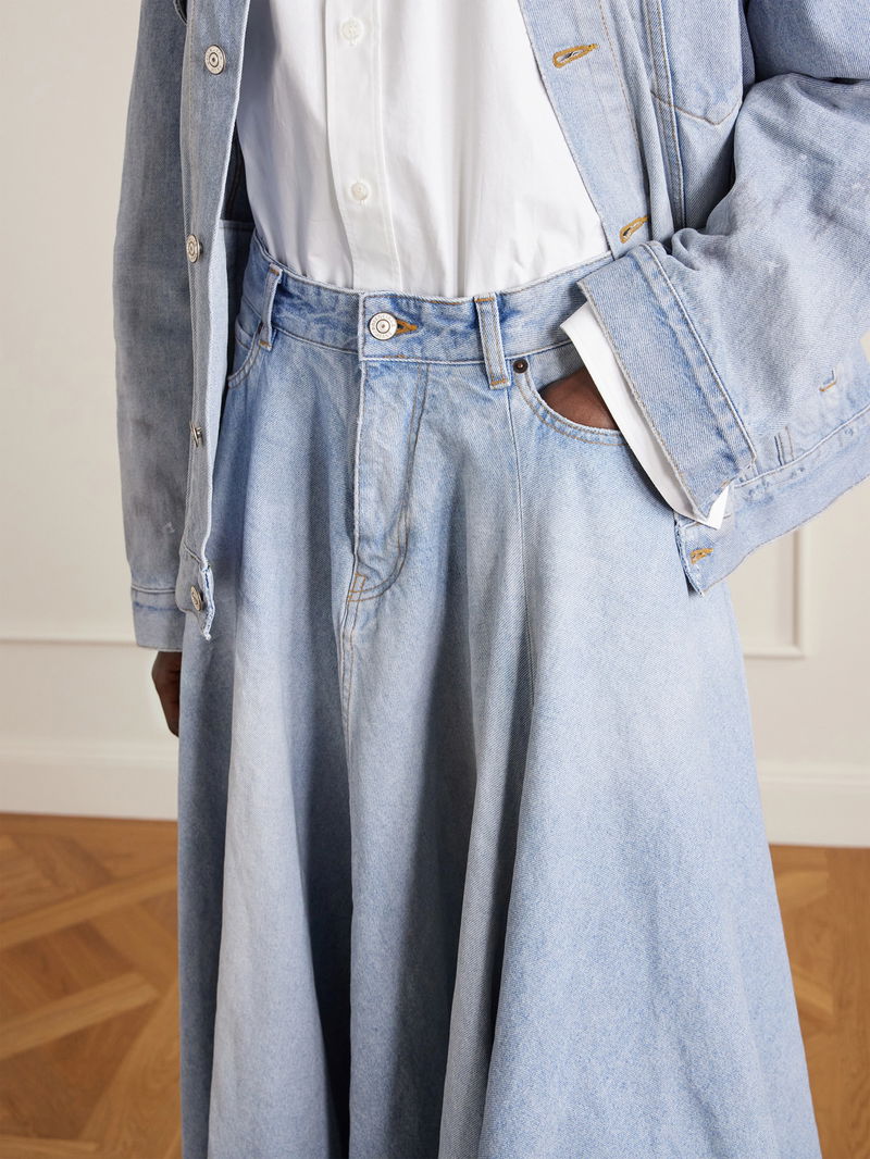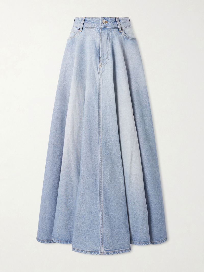 Part of the label's 'Garde-Robe' line, Balenciaga's maxi skirt is made in Japan from light-blue, non-stretch denim that's washed for a faded appearance. Defined by godet panels, it has a voluminous, flowing silhouette.