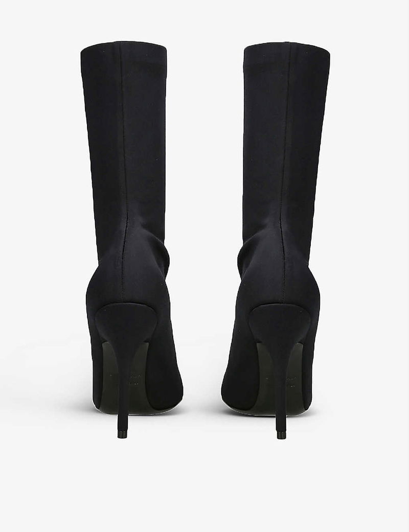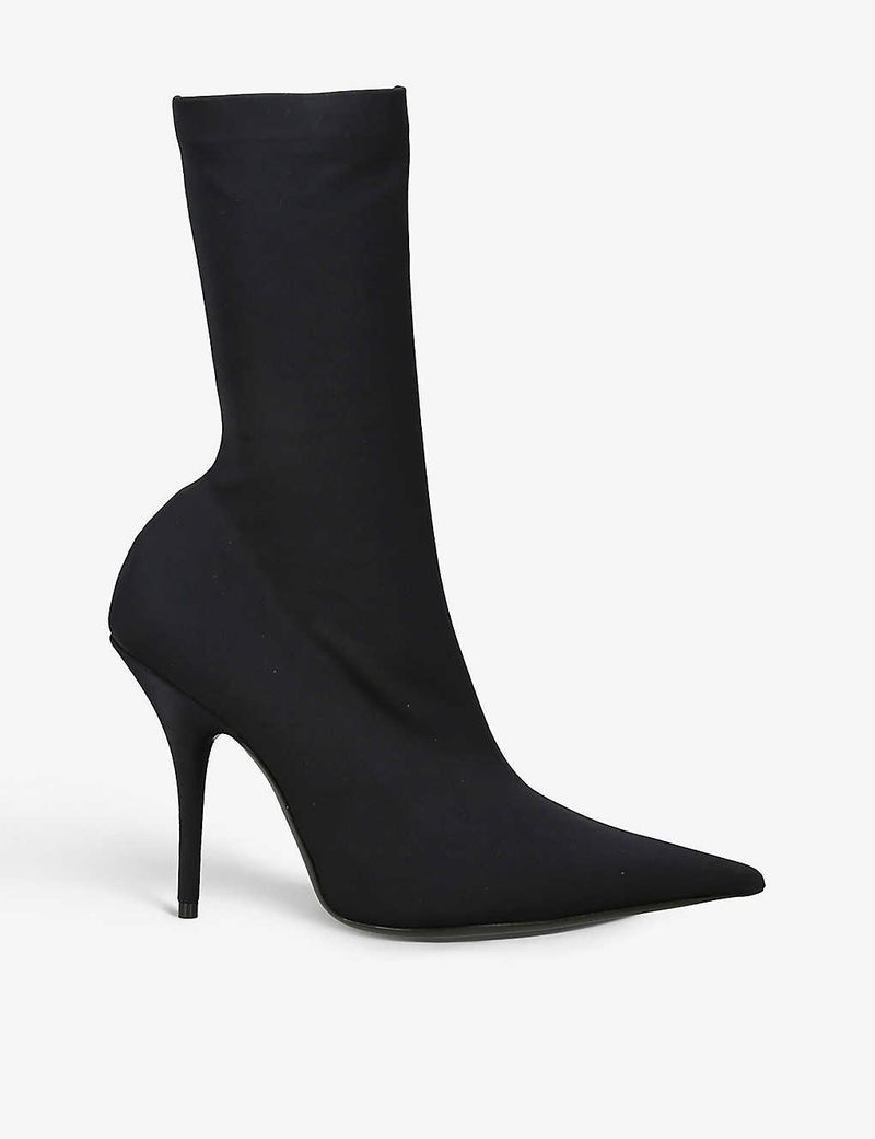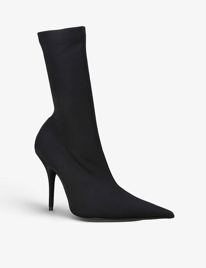 Under the creative direction of Demna Gvasalia, Balenciaga's cult, fetish-inspired Knife mules are reworked into boot formation. The result? The Knife boots. In line with the Parisian maison's subversive identity, this pair are crafted in Italy from stretchy fabric to give a smooth second-skin fit, while the exaggerated and elongated pointed toe and ice pick-like stiletto heel only further enhance their namesake.