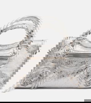 The Le Cagole Heart Mini crossbody bag from Balenciaga is made from metallic leather in a charming heart-shaped design. It features textured hardware and a chain strap that can be worn crossbody or on the shoulder.