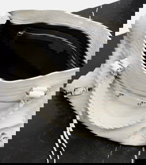 Balenciaga's 'Crush' tote is named for its flexible shape. It's crafted from washed-denim, trimmed with leather and has a silver-tone curb chain strap. The compact, yet spacious interior will comfortably fit your phone, sunglasses and wallet.
