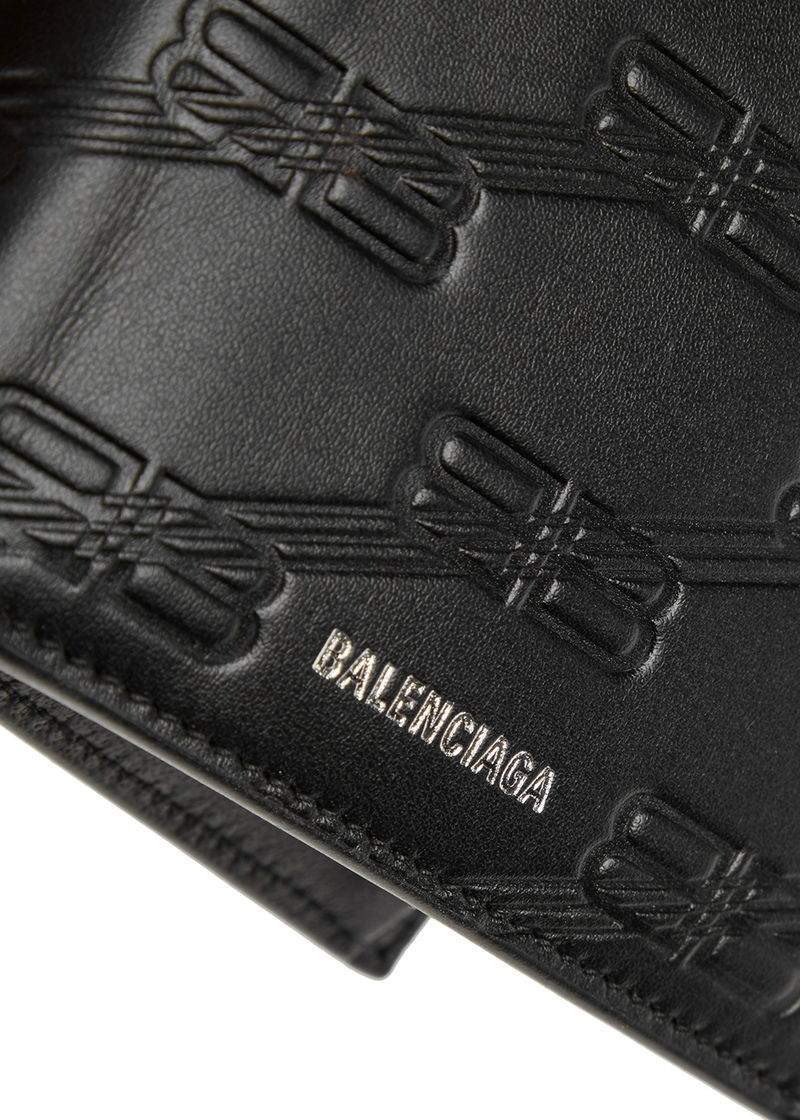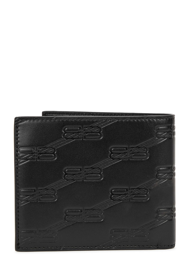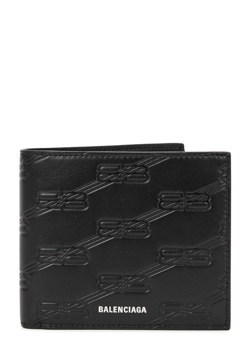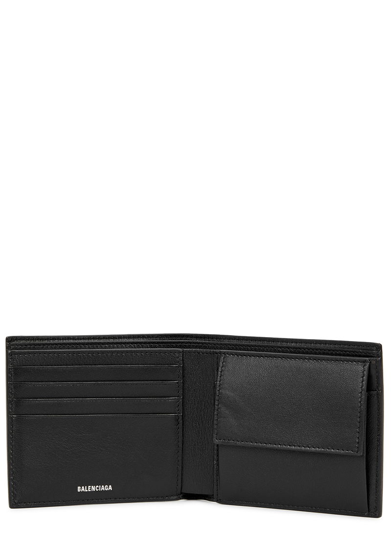 Balenciaga leather wallet. Logo embossed, designer stamp, four internal card slots, two note sections, press-stud fastening coin section, fully lined. Presented in a designer-stamped box with a pouch.
