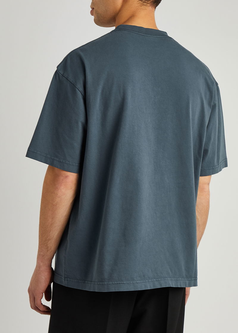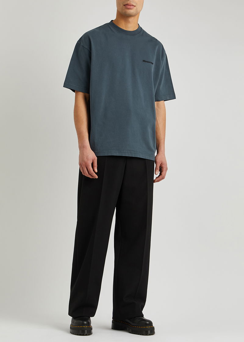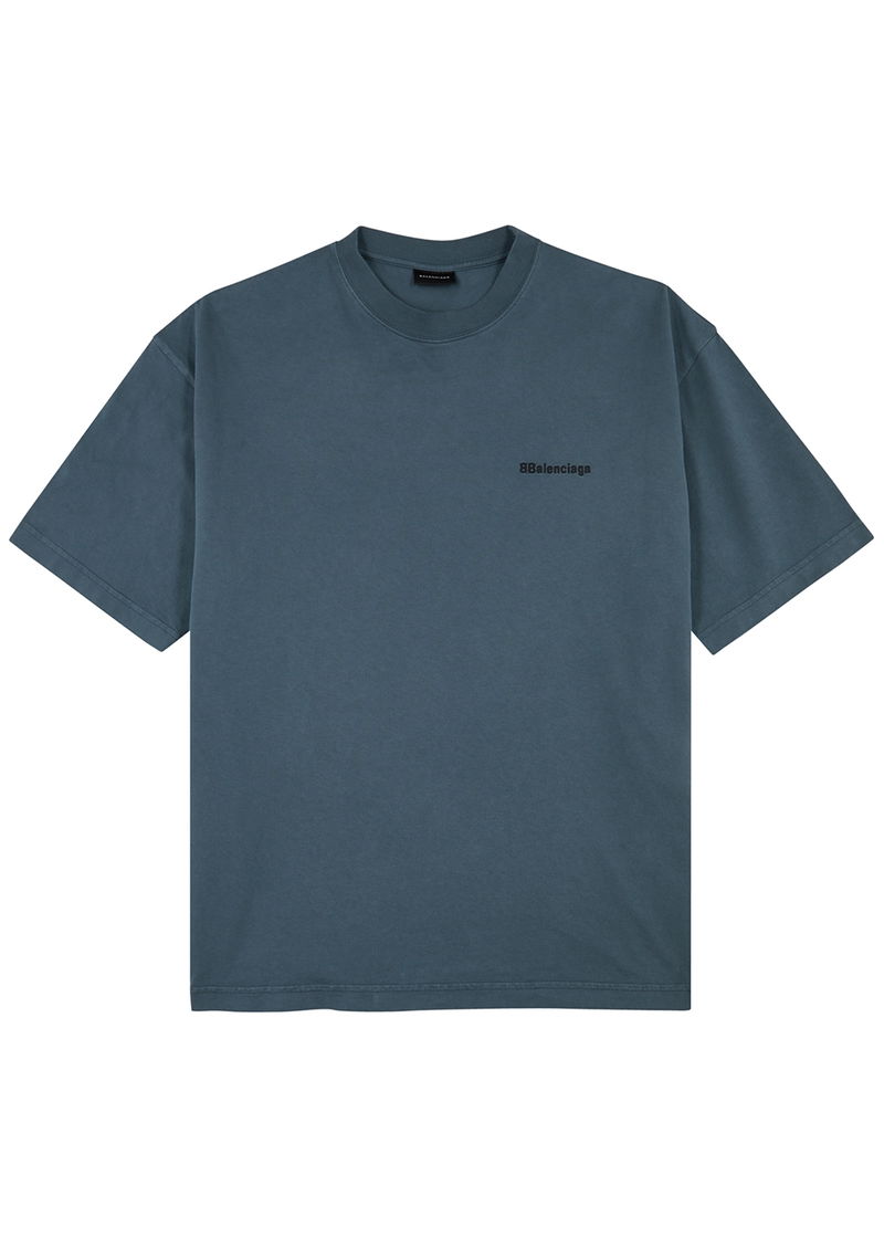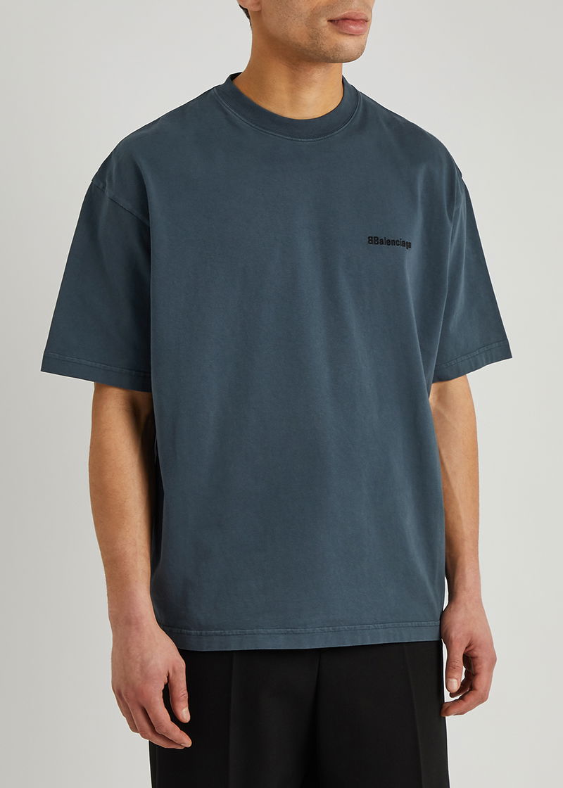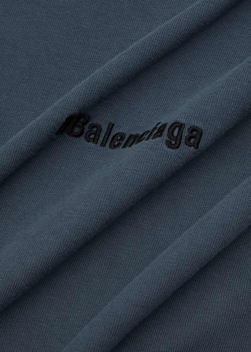 Balenciaga cotton T-shirt. Ribbed crew-neck, embroidered designer logo at chest, dropped shoulders. Slips on.