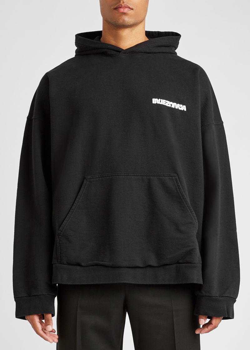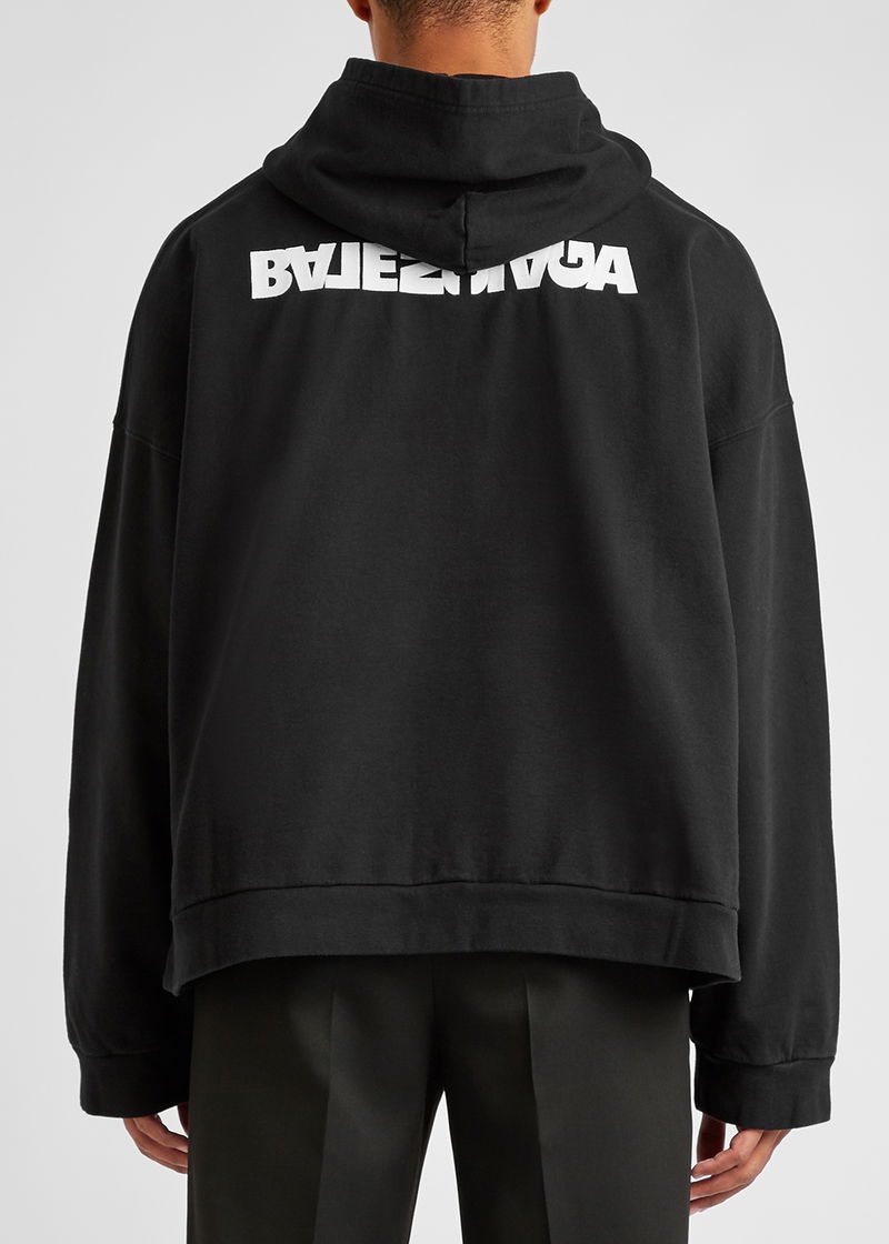 Demna Gvasalia’s unique creativity has seen the designer reimagine Balenciaga’s logo season after season. Topped with a hood, this relaxed cotton sweatshirt is embroidered with the new “Turn” reversed motif at the front and back.