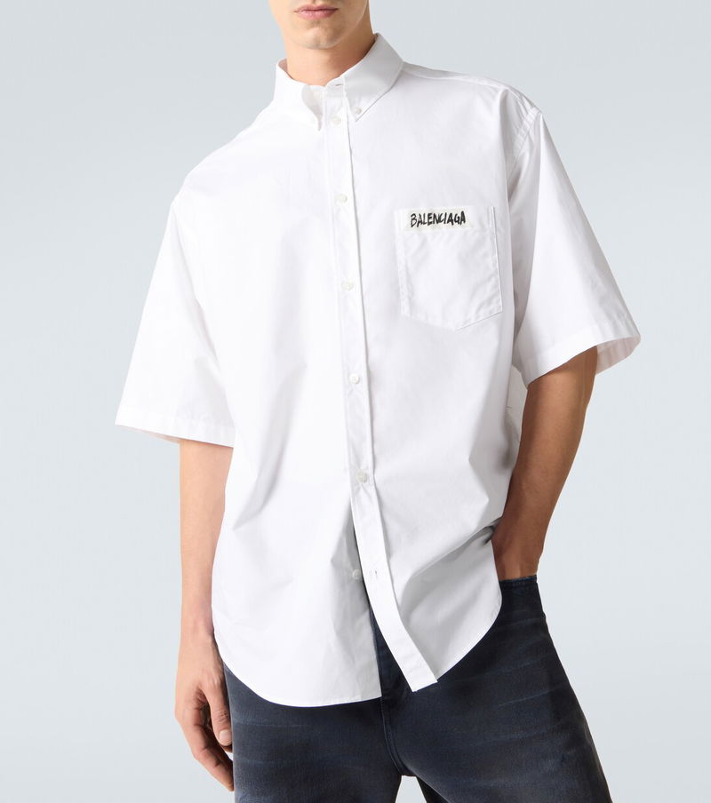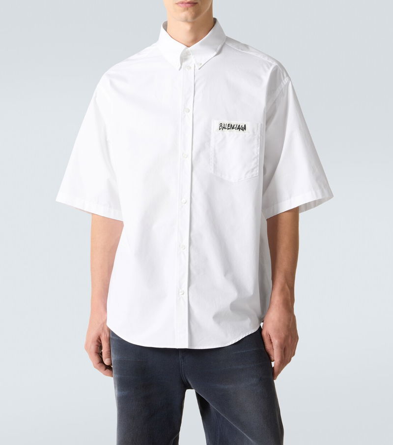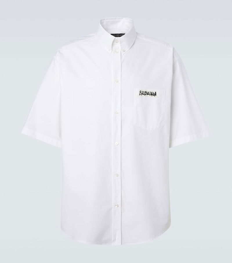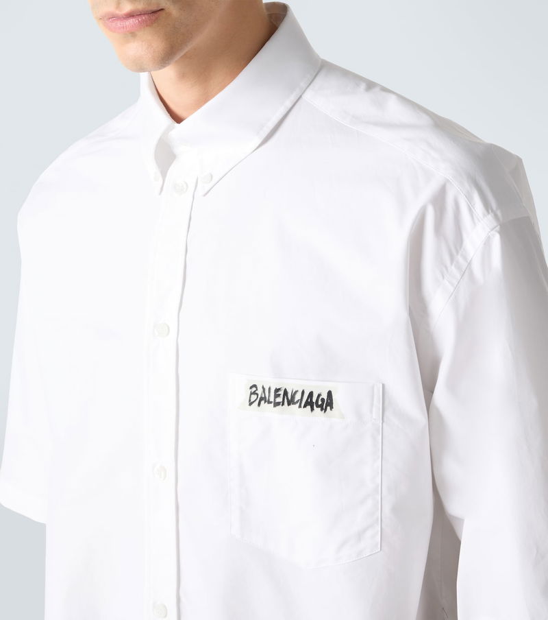 Balenciaga has evolved from the heartbeat of Paris to become one of the world’s most influential brands. Made in Italy from cotton poplin, this shirt is a short-sleeved style with the brand's Masking Tape logo at the heart.
