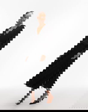 Bodycon fit. High neck. Long sleeves. Slightly transparent fabric. Maxi length. Crinkled effect.