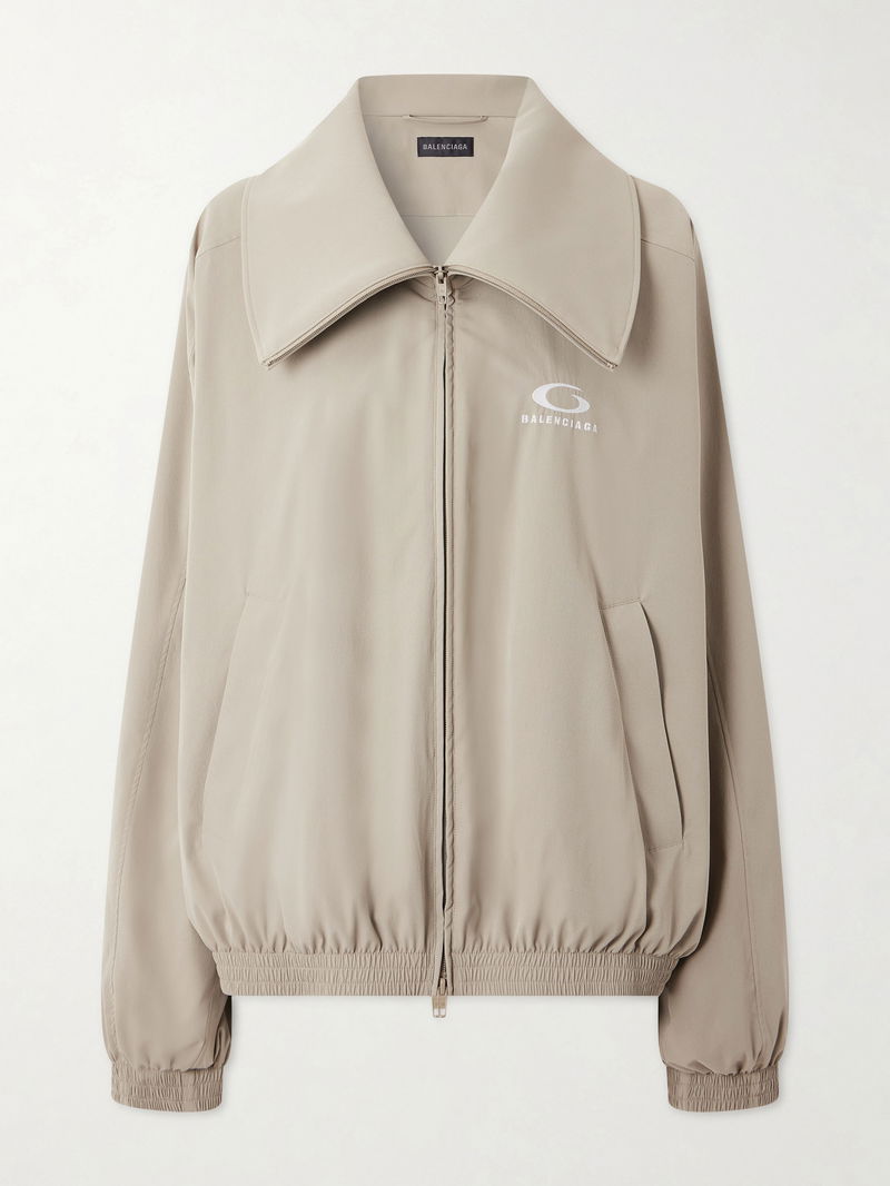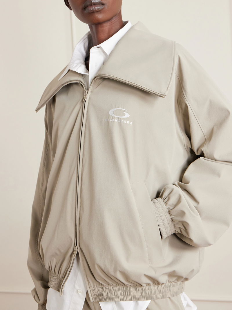 Sporty and relaxed, Balenciaga's track jacket has an exaggerated collar and loose fit. It's made from smooth shell that's embroidered with the label's logo at the chest and elasticated at the cuffs and hem. Wear it with baggy jeans or sweatpants.