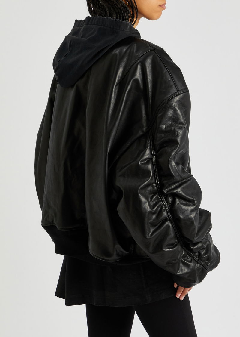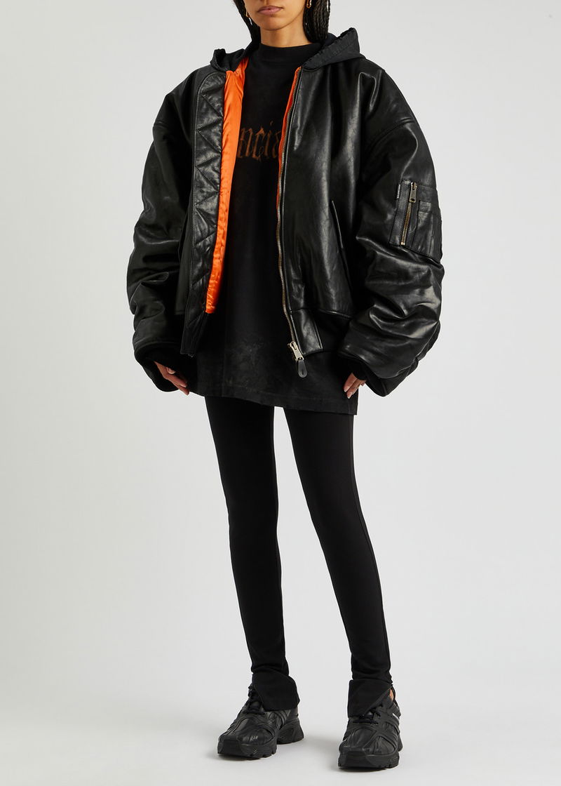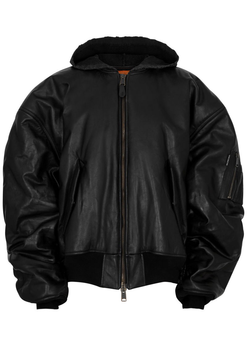 The bomber jacket has never as looked as cool as Balenciaga’s version. Topped with a contrasting cotton hood, this padded supple leather design is cut to a puffed-up oversized silhouette with ruched sleeves to enhance the volume.