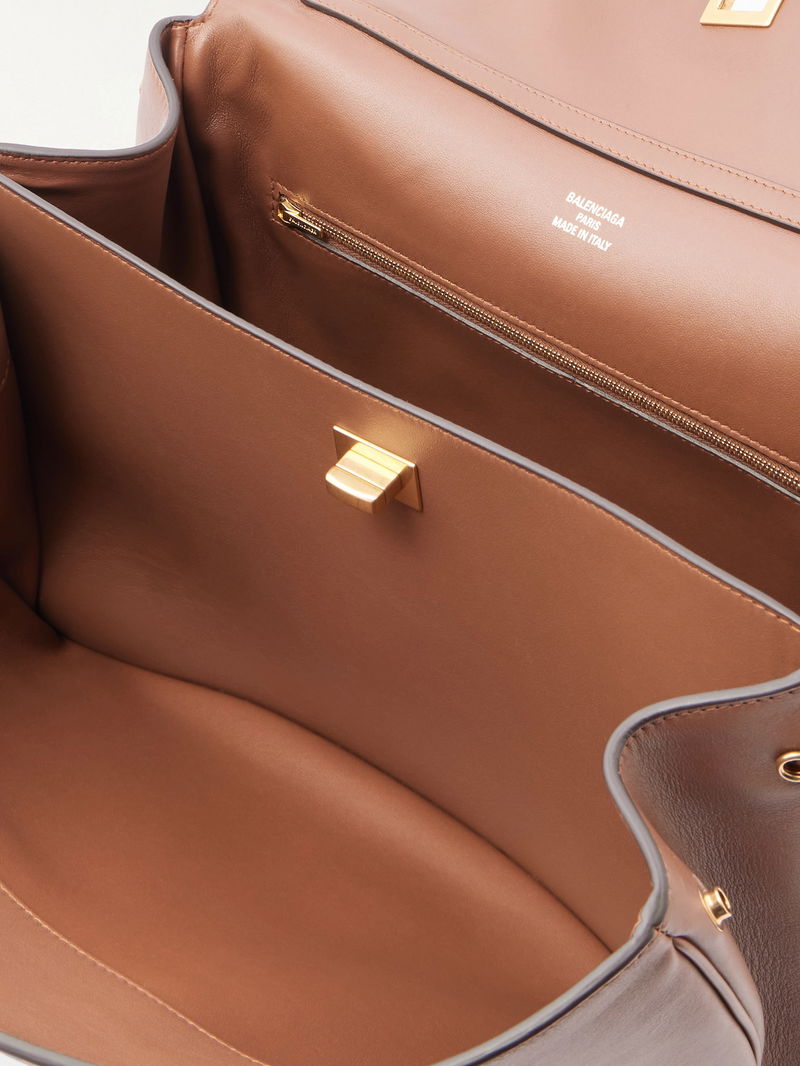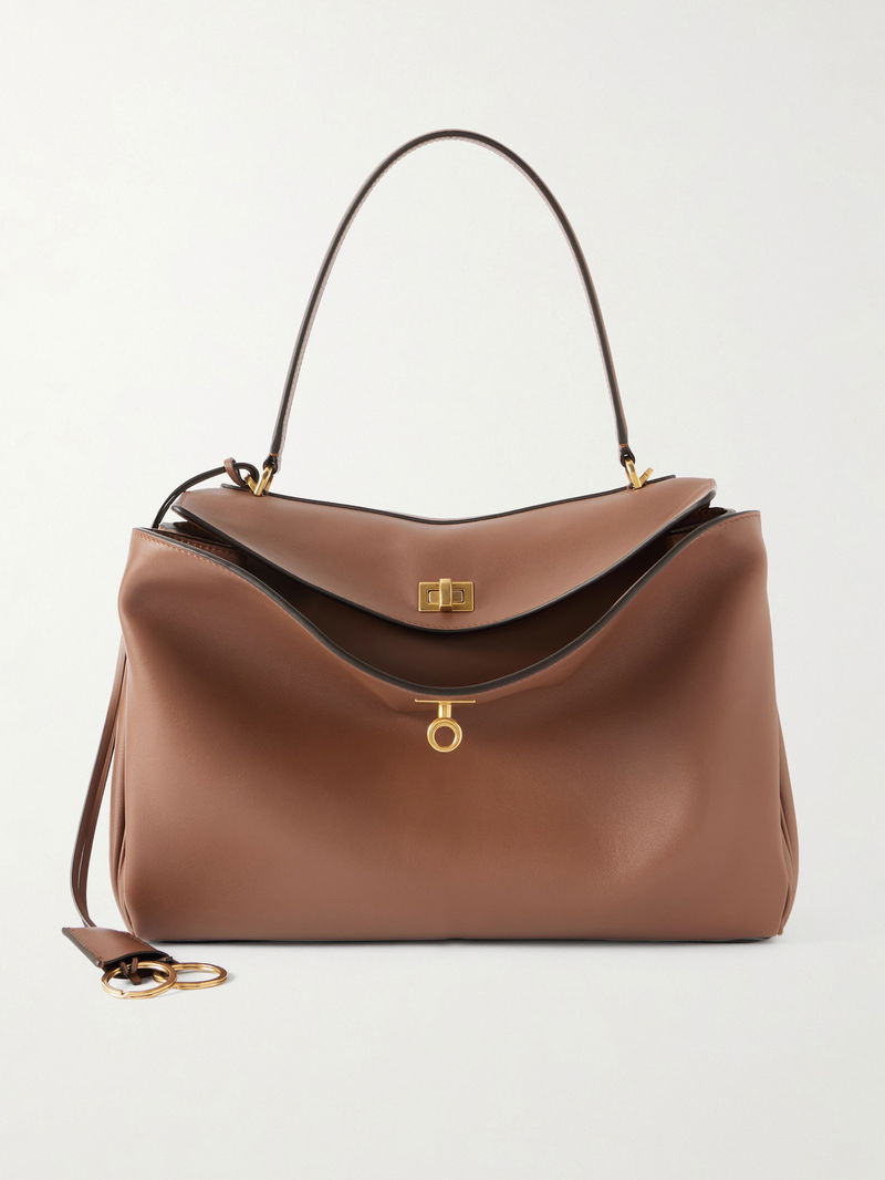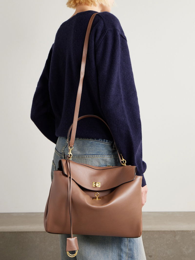 Balenciaga’s ‘Rodeo’ bag is reminiscent of vintage briefcases. Made from supple leather, it has a slouchy shape and striking gold-tone hardware. There's plenty of space and compartments inside to neatly organize your essentials - think wallet, keys, makeup kit, water bottle and tablet. Attach the strap to go hands-free on long commutes.
