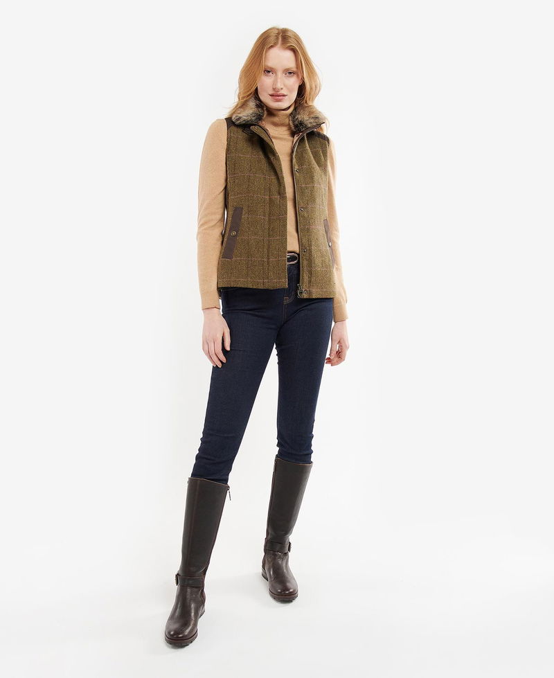 The Barbour Alder Wool Gilet features a country wool design with a detachable faux fur collar for a versatile styling alternative. Showcasing an authentic country design, this gilet boasts suedette shoulder yokes, neck strap and welt pockets for premium detail features. Boasting an all over wool check outer, branding to the left pocket effortlessly finishes the garment.