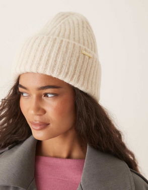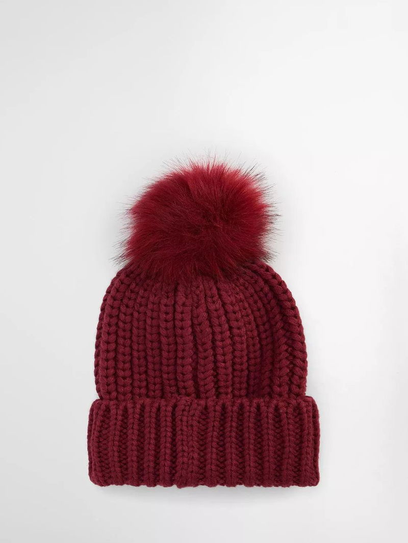 The Alnwick beanie hat is knitted with a stylish chunky yarn and features a contrasting ribbed turn-up hem and a traditional faux-fur pom to the top.