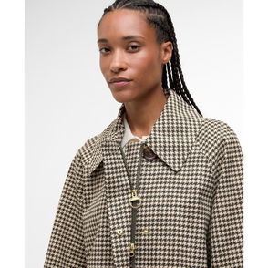 Embrace timeless style with the Barbour Averie Showerproof Jacket. This button-down chore jacket features a classic cord collar, bellowed pockets and a tartan under cuff for a touch of heritage charm. The internal draw cord gives a customisable fit. The mock horn buttons complete the authentic Barbour aesthetic, blending tradition and innovation for everyday wear or casual outings.