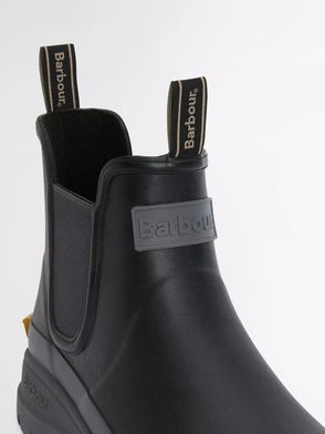 Rain-ready style Pull-on style Adjustable strap Signature Barbour branding Round toe Chunky sole.