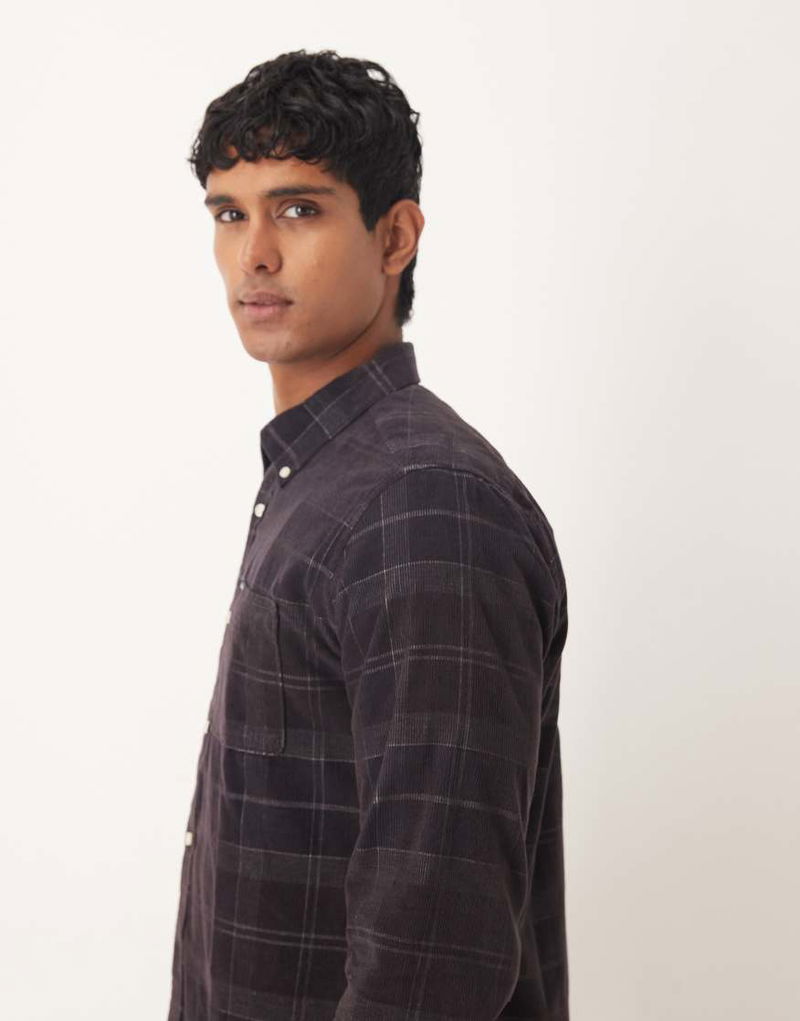 Blair Tailored Tartan Cord Shirt In Midnight Oak Tartan - BROWN
