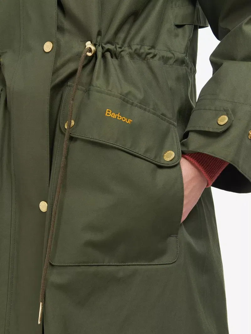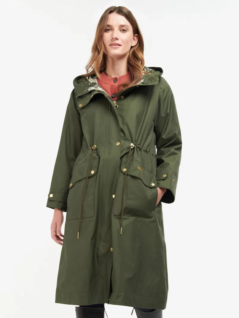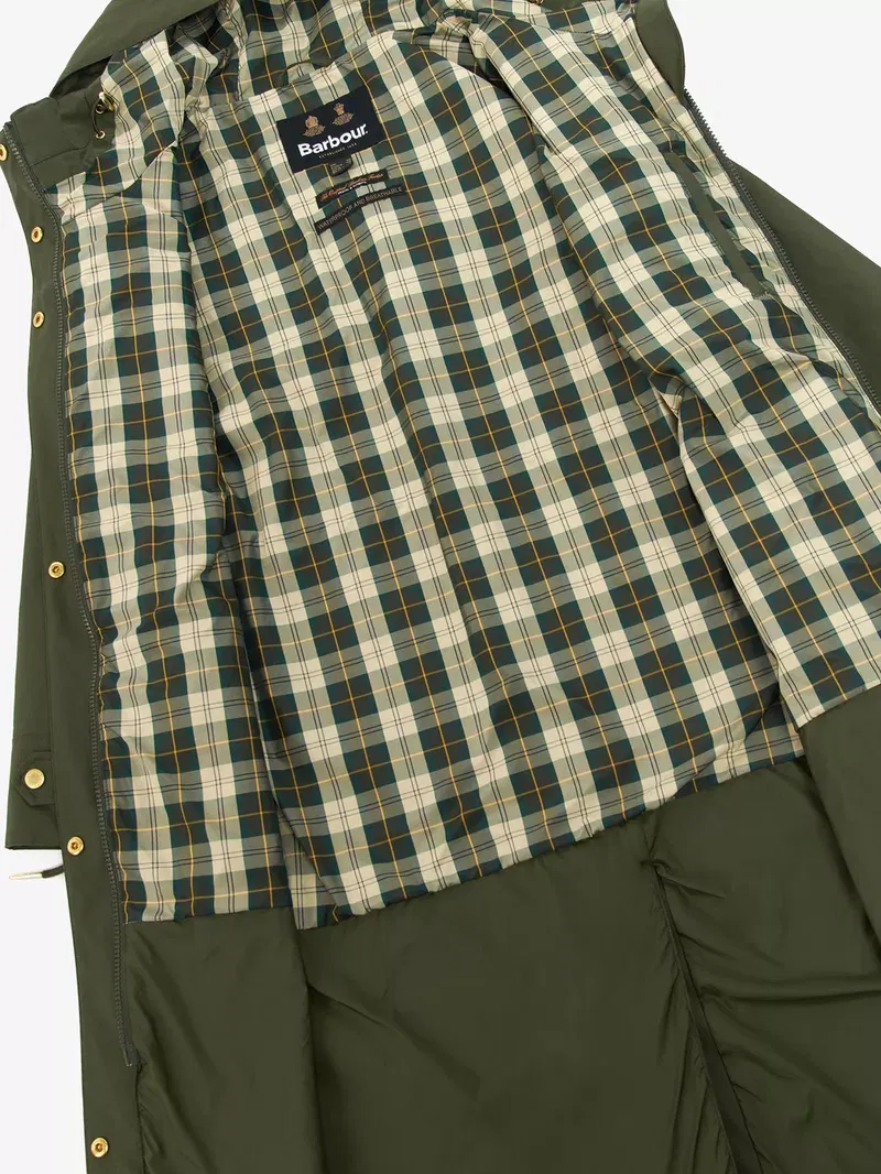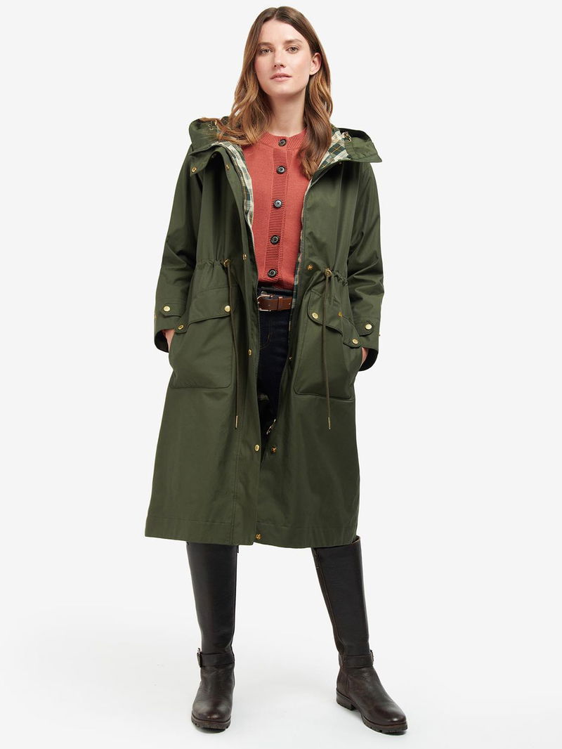 Ideal for the changing weather, this parka by Barbour falls just to the knee in a mid-length cut. A practical option with its built-in hood, it is made from a comfortable cotton blend.