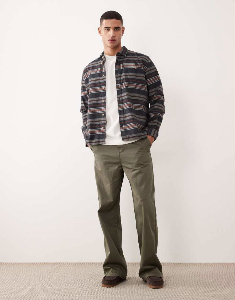 Bowscale Striped Relaxed Shirt In Charcoal Marl