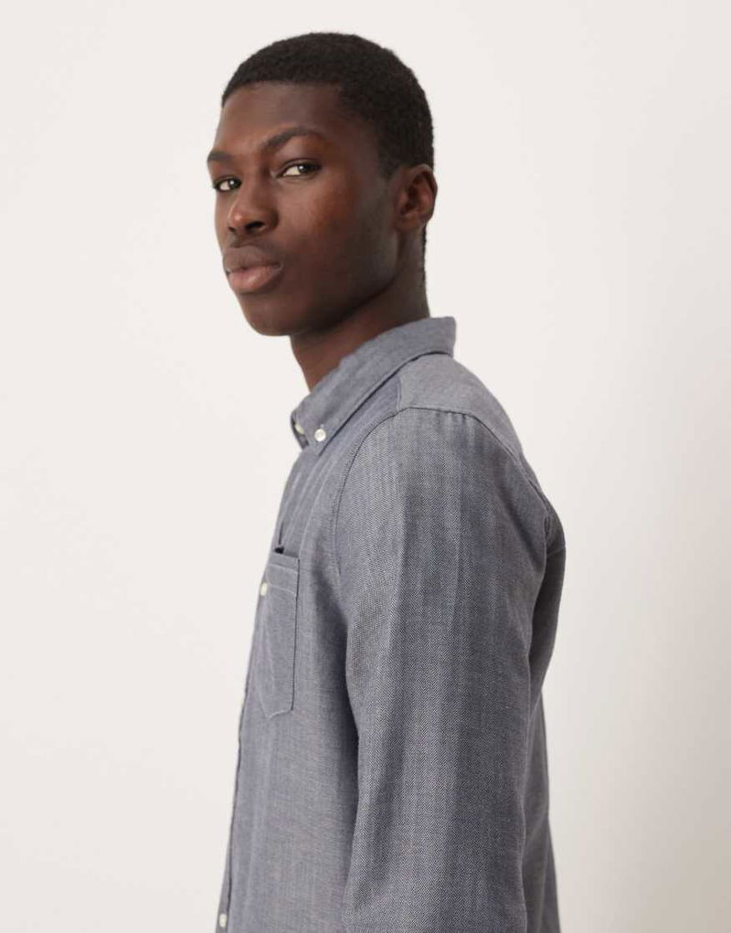 Buckley Tailored Herringbone Shirt In Dark Navy - NAVY