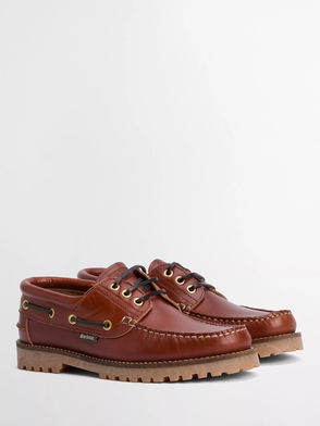 The Barbour Capstan is a hand-sewn boat shoe with a moccasin construction and an oily-leather upper. This lightweight pair is detailed with the Barbour Beacon emblem at the side panels and an embossed-leather eyelet trim.