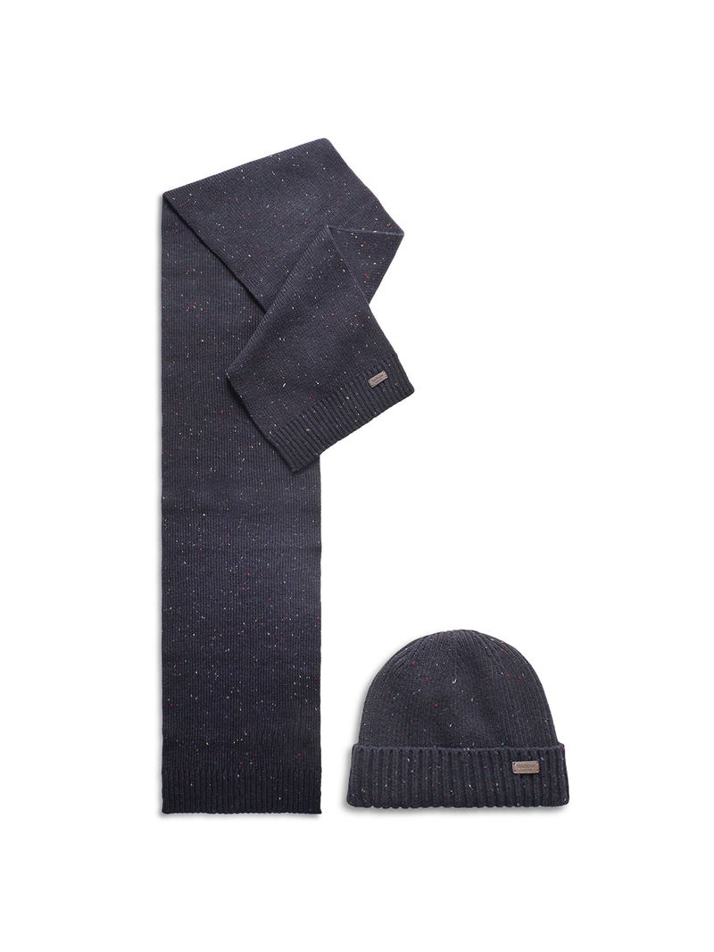 The Carlton Fleck Gift Set by Barbour pairs a ribbed beanie and matching scarf in a rich navy hue. Crafted in a soft wool blend with subtle fleck detailing, this set delivers warmth and understated refinement for the colder months. Presented in a Barbour gift box, it makes an ideal seasonal gift.