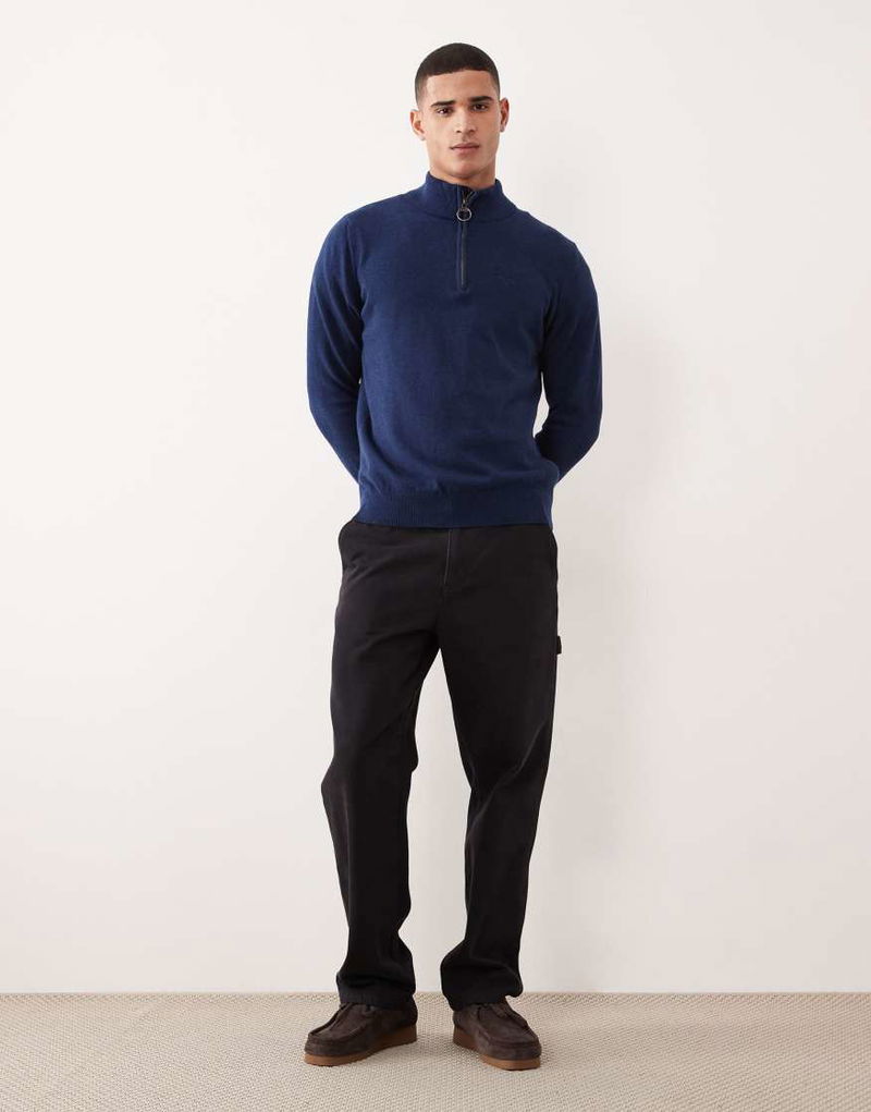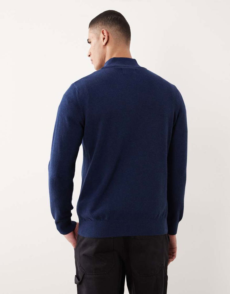 Cotton Half Zip Knitted Jumper In Inky Marl