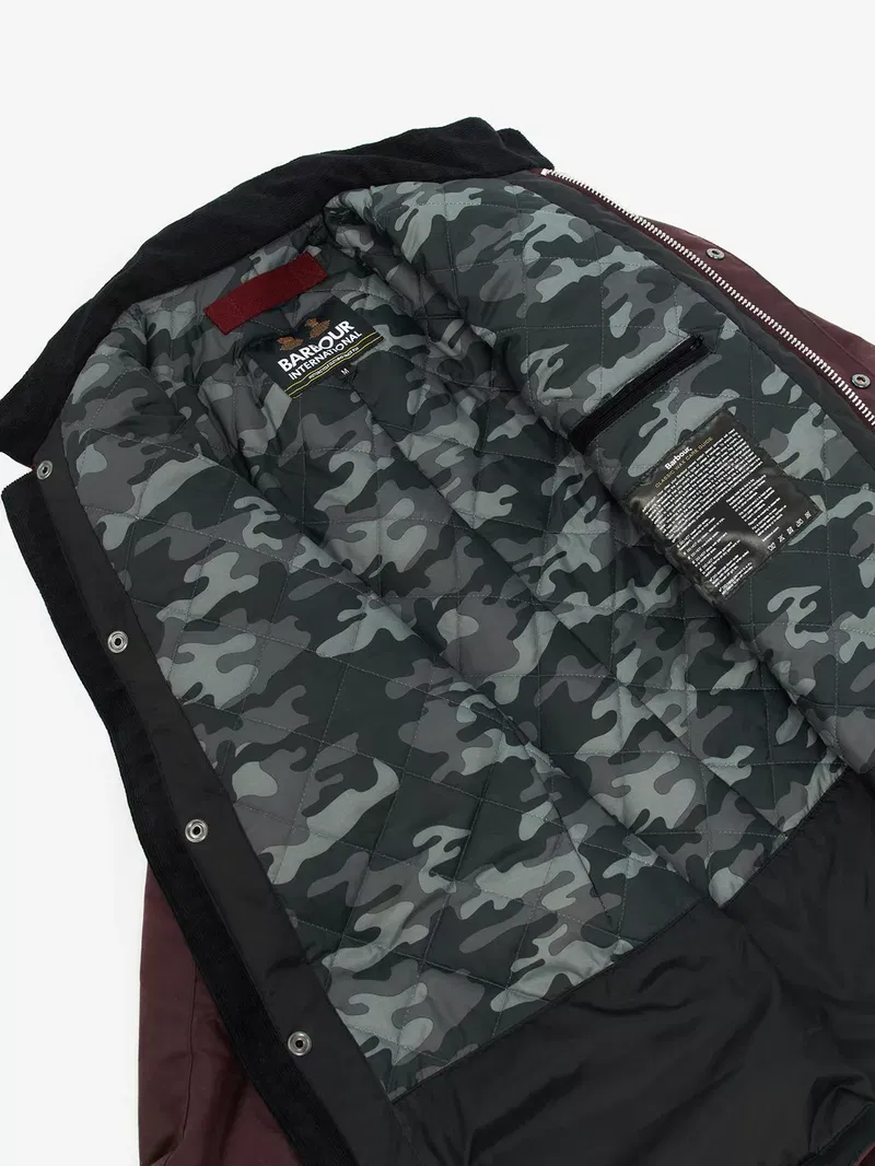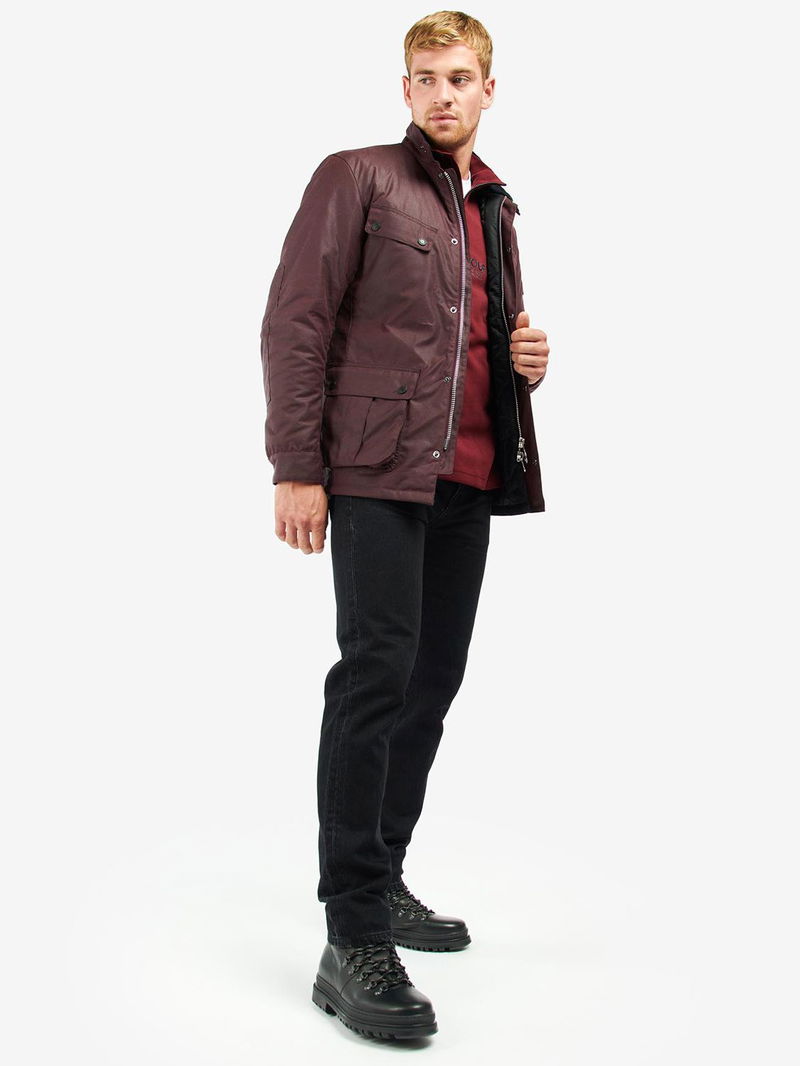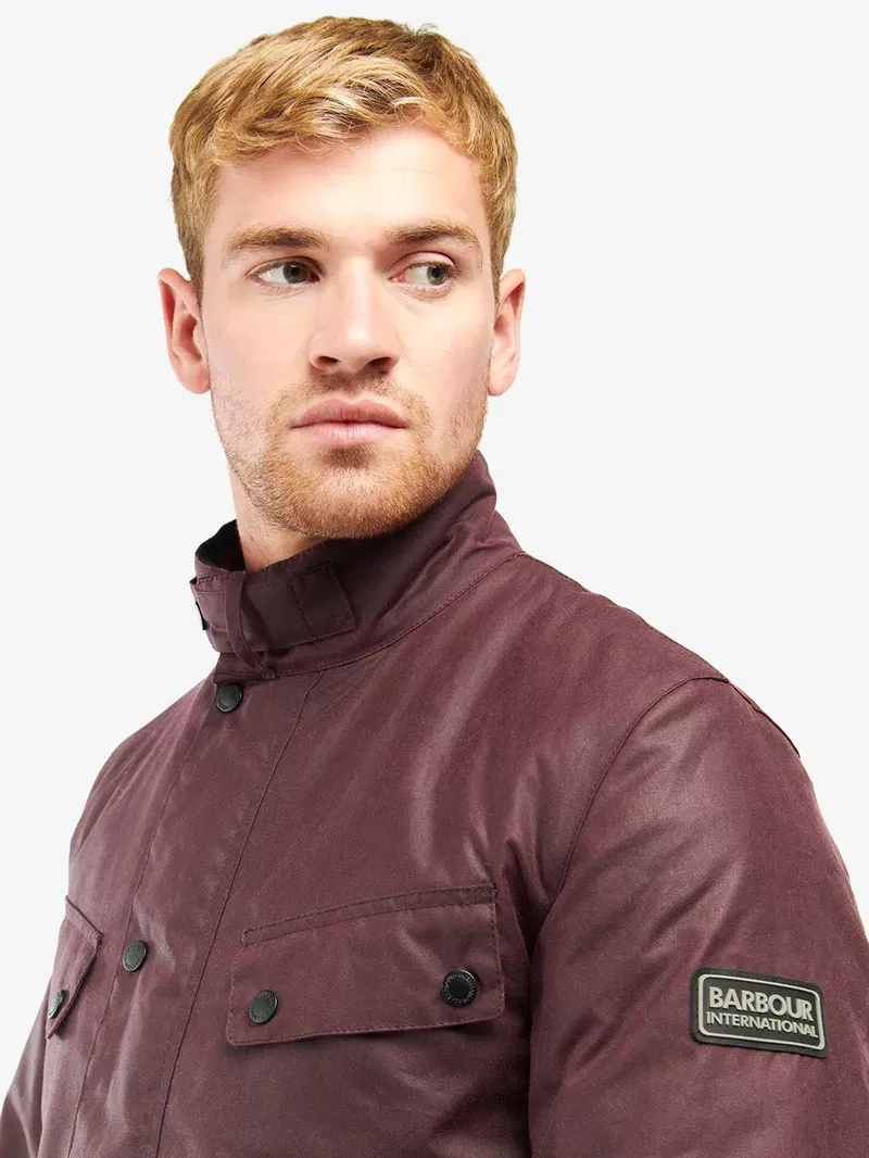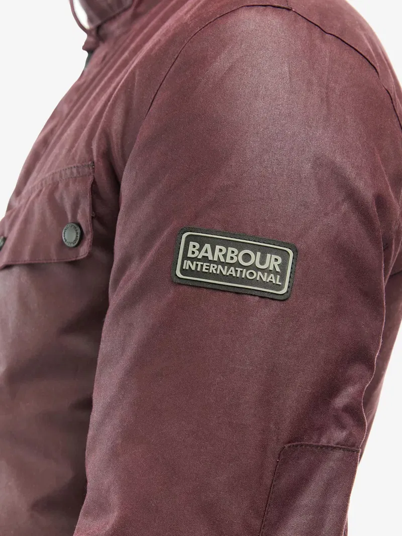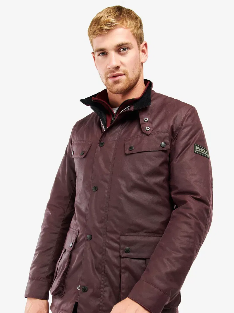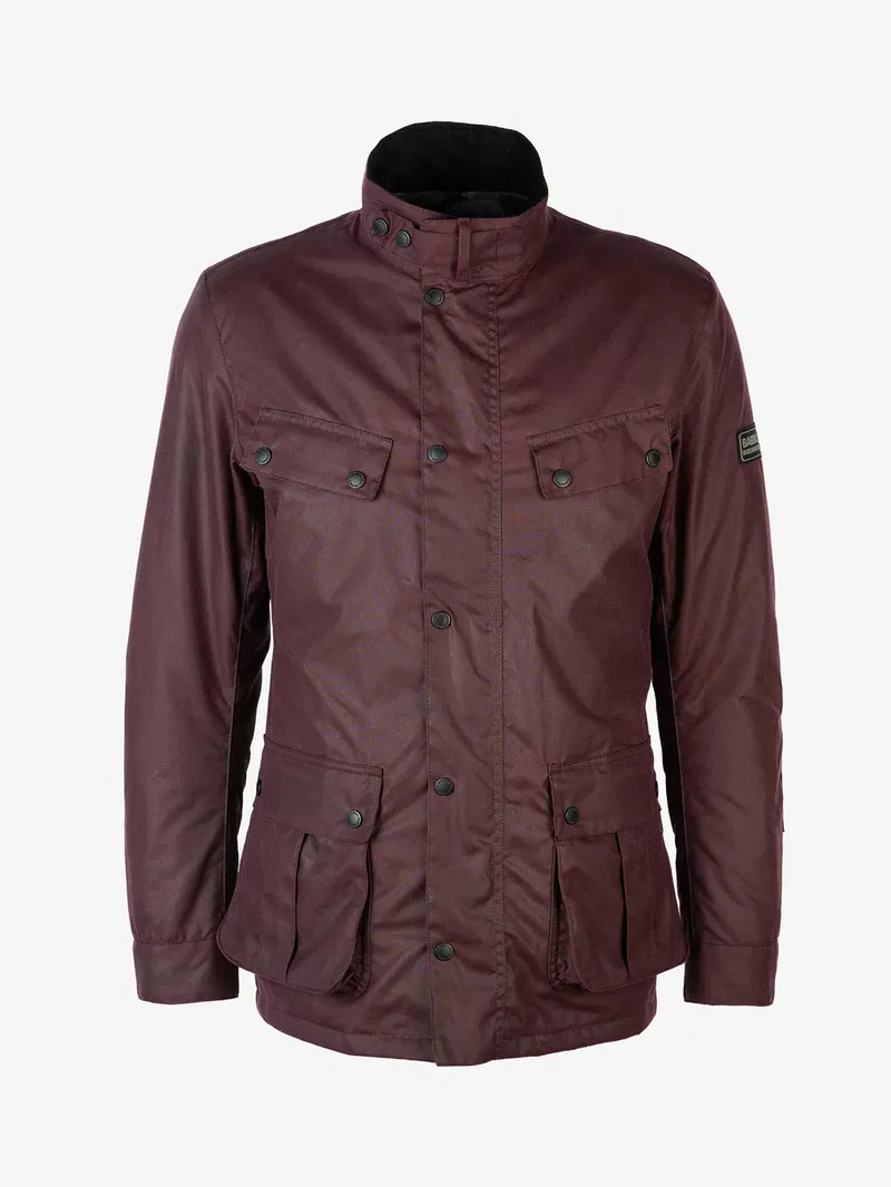 Make a statement with this Duke Wax Jacket from Barbour. This contemporary jacket is crafted from 100% waxed cotton and features angled upper pocket flaps and lower box pleated patch pockets. Other details include a studded collar strap with needlecord to the interior collar and a lightweight cotton lining with tartan buggy.
