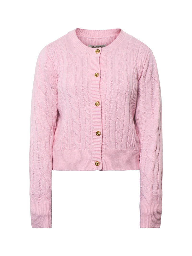 The Elina Knitted V-Neck Cardigan by Barbour features a soft knit texture shaped into a relaxed, feminine silhouette. Its gentle drape and understated finish enhance its layering potential.