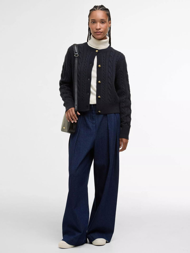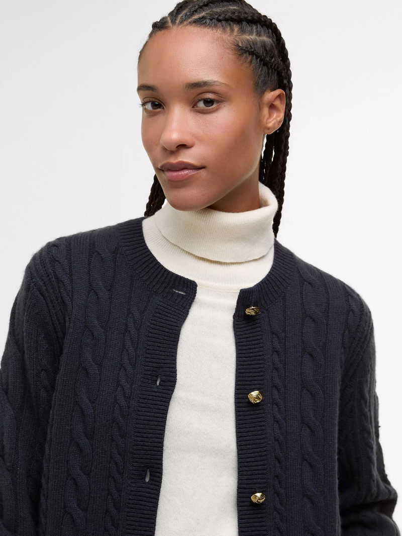 Elina Wool Blend Knit Cardigan, Dark Navy