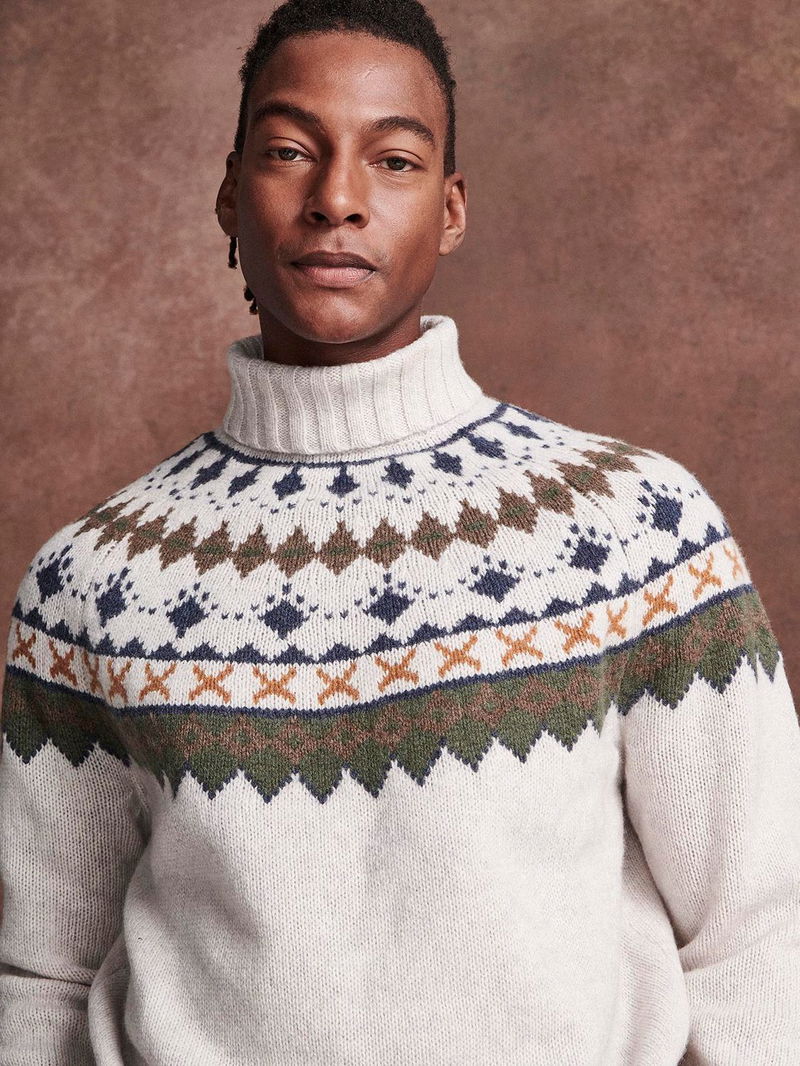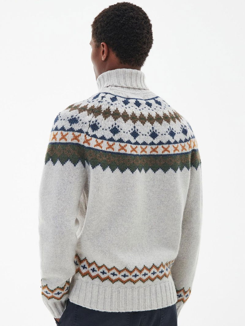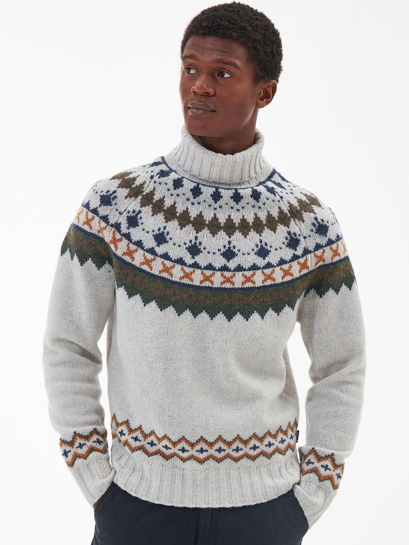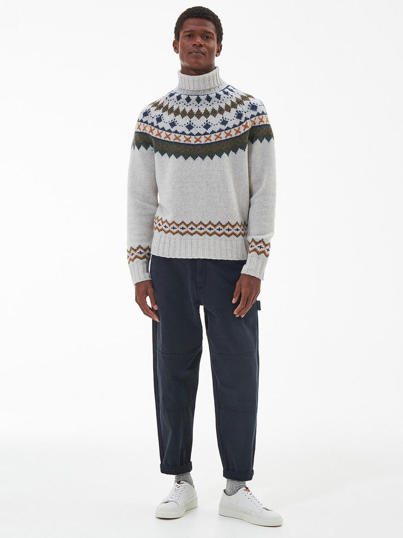 A firm foundation for cool-weather wardrobes, this roll-neck jumper from Barbour is kept classic with its timeless Fair Isle stitching and has a soft woollen construction.