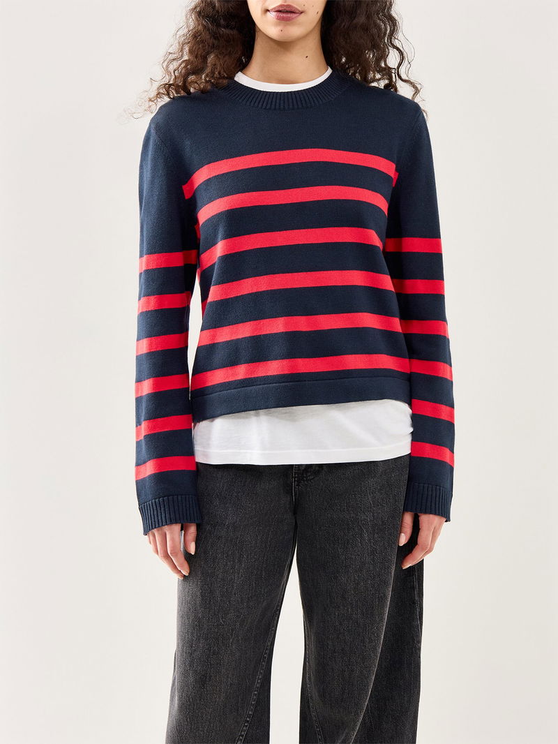 The Fern Knitted Jumper by Barbour reflects a craftsmanship-first approach to knitwear. Finished in a navy and red colourway, it offers comfort through considered construction and refined detailing. A modern essential with lasting relevance.