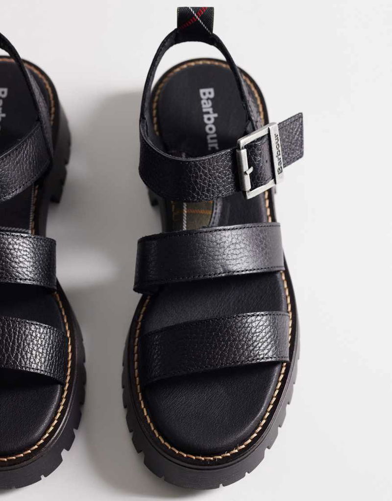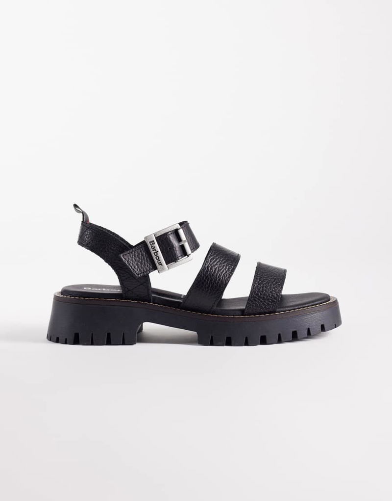 Gabby Leather Chunky Strap Sandals In Black