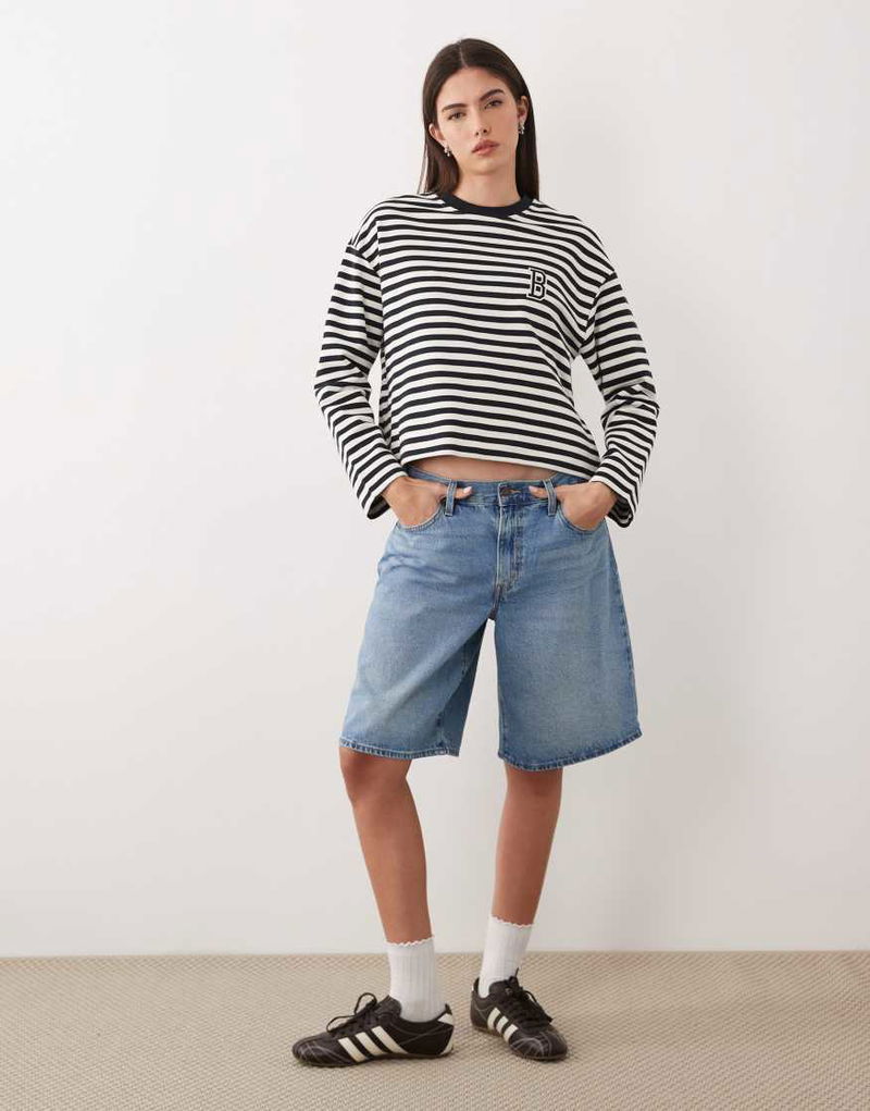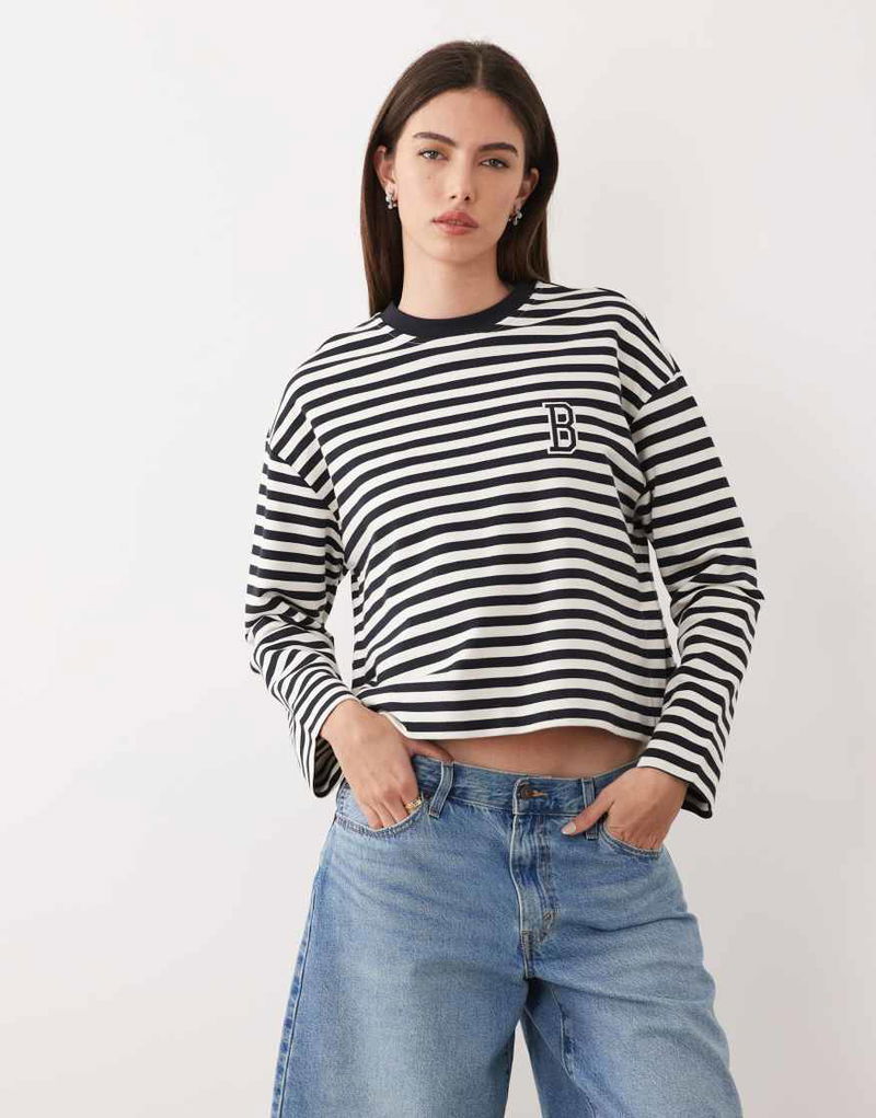 Gabby Relaxed Logo Sweatshirt In Navy And White Stripe