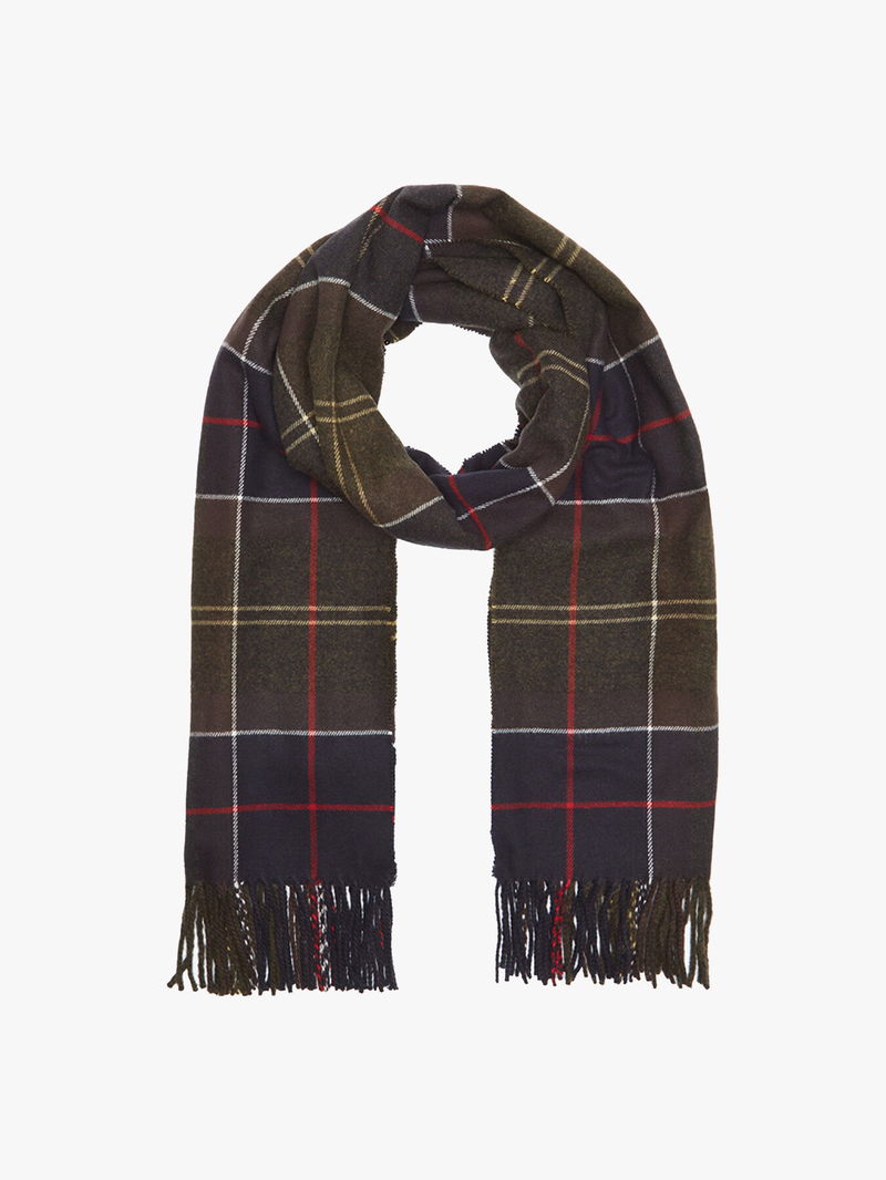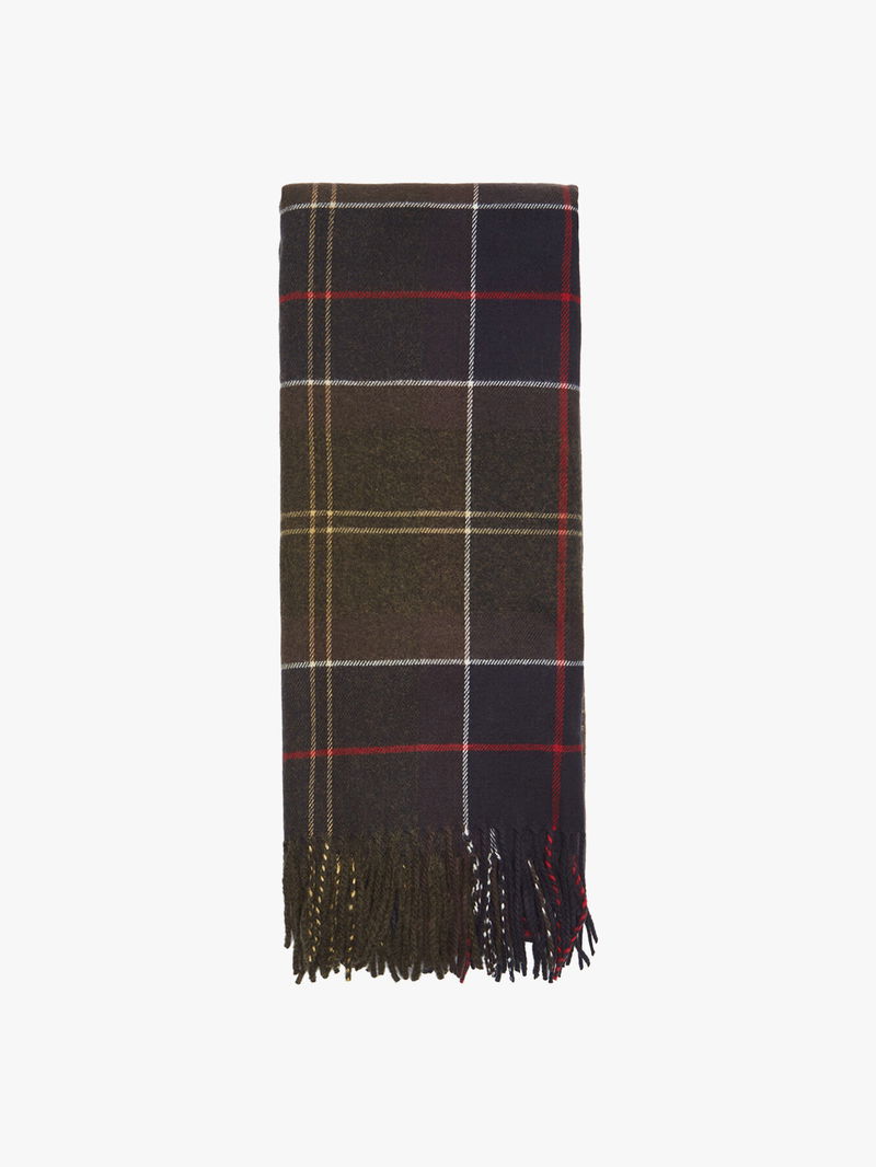 This generously proportioned wrap-style scarf is created in bouclé yarn for a super-soft, textured look and feel. Featuring Barbour's iconic tartan, it's finished with a tasselled hem for a traditional look.
