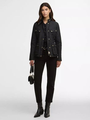 Offering contemporary designs with a touch of signature glamour, Barbour International's outerwear is known for its statement making profiles. The Halsey Quilted Jacket certainly upholds that sentiment with its diamond quilting and bright brass hardware. Finished with an iconic logo plaque to the sleeve, it's the perfect layer for the transitional seasons.