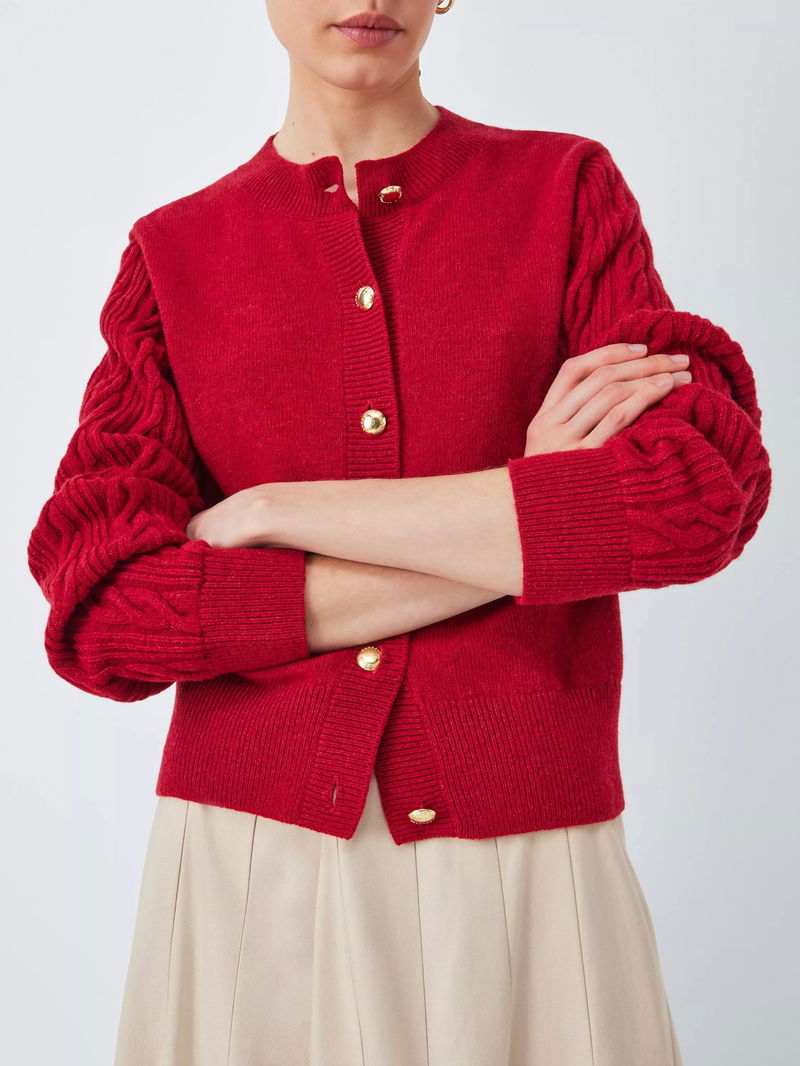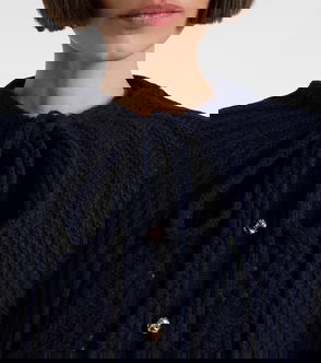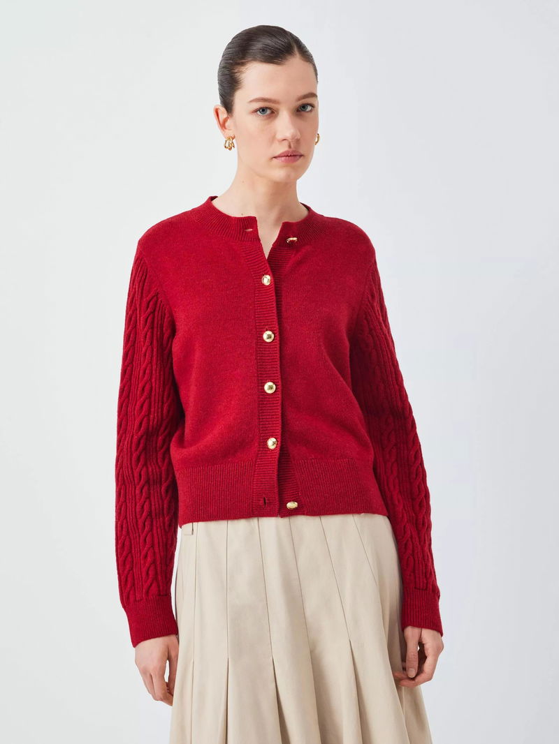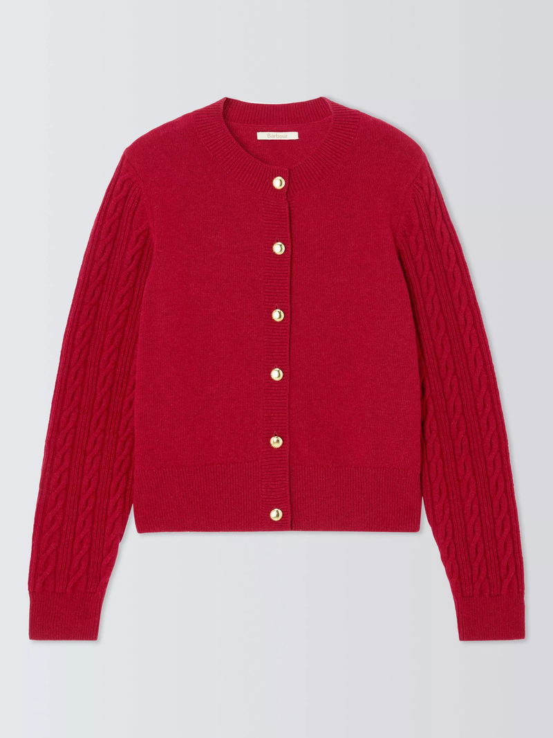 A classic round-neck cardigan knitted from a luxuriously soft wool-blend, the Barbour Hixon Cardigan is ideal for year-round layering. Featuring a button fastening and contrasting cable-knit sleeves, the cardigan is finished with a metal ID bar to the back neck.