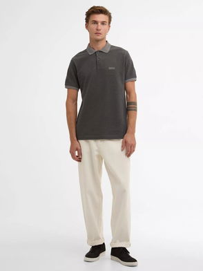 Polo collar Partial button placket Short sleeves Logo print to chest Regular fit.