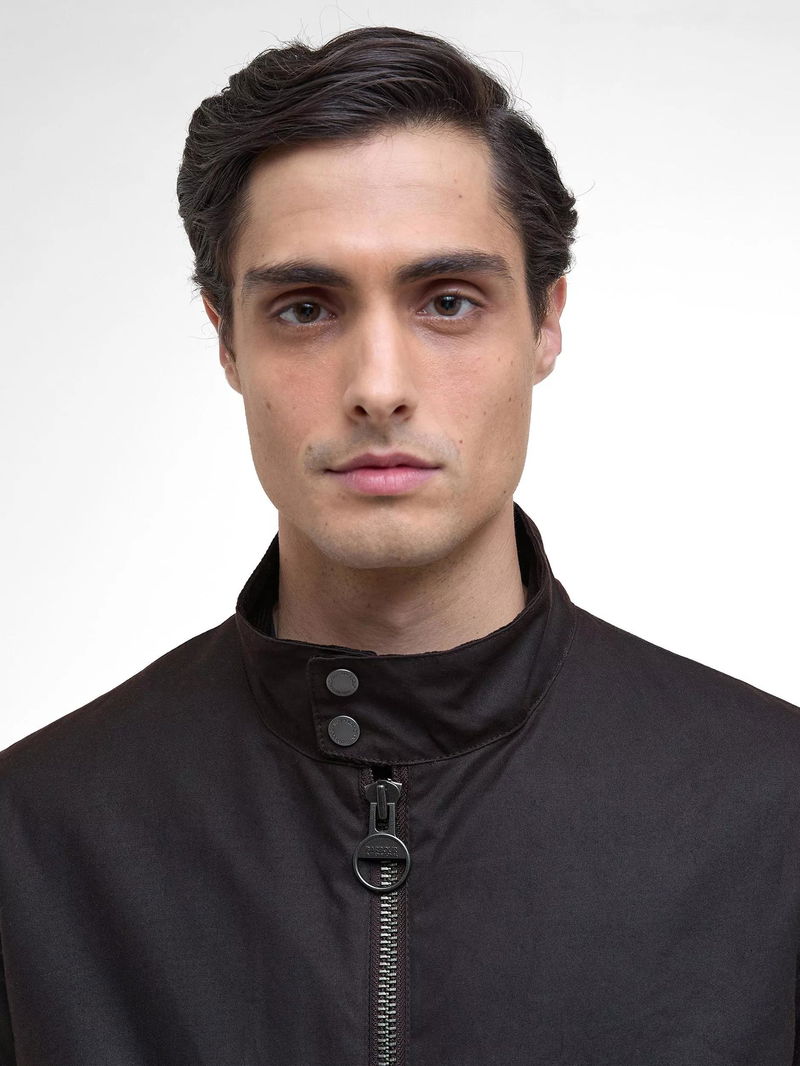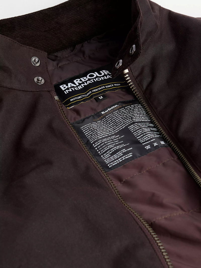 The Barbour International Lutlaw Waxed Jacket taps into Barbour International's iconic motorcycling heritage with its double stud throat strap and metal hardware. Detailed with a baffle quilted lining and stud adjusters to the cuffs and hems, it not only offers a fashion-forward appeal but warmth and protection in the cooler months.