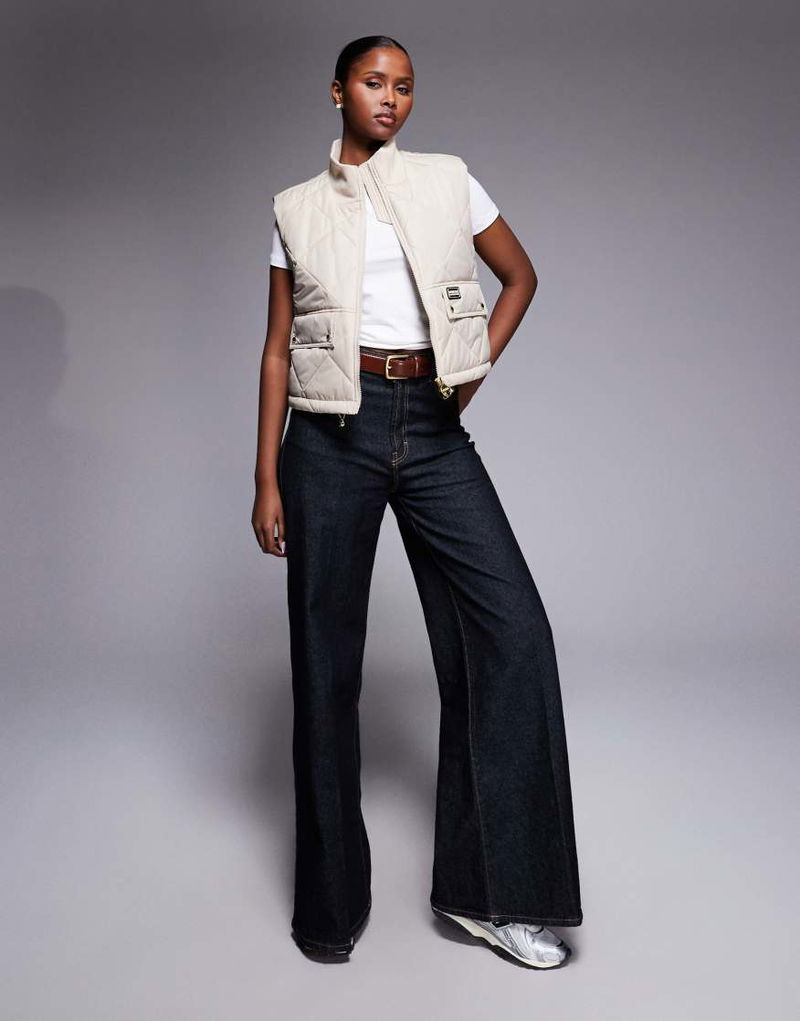 Nia Cropped Chinched Gilet In Beige