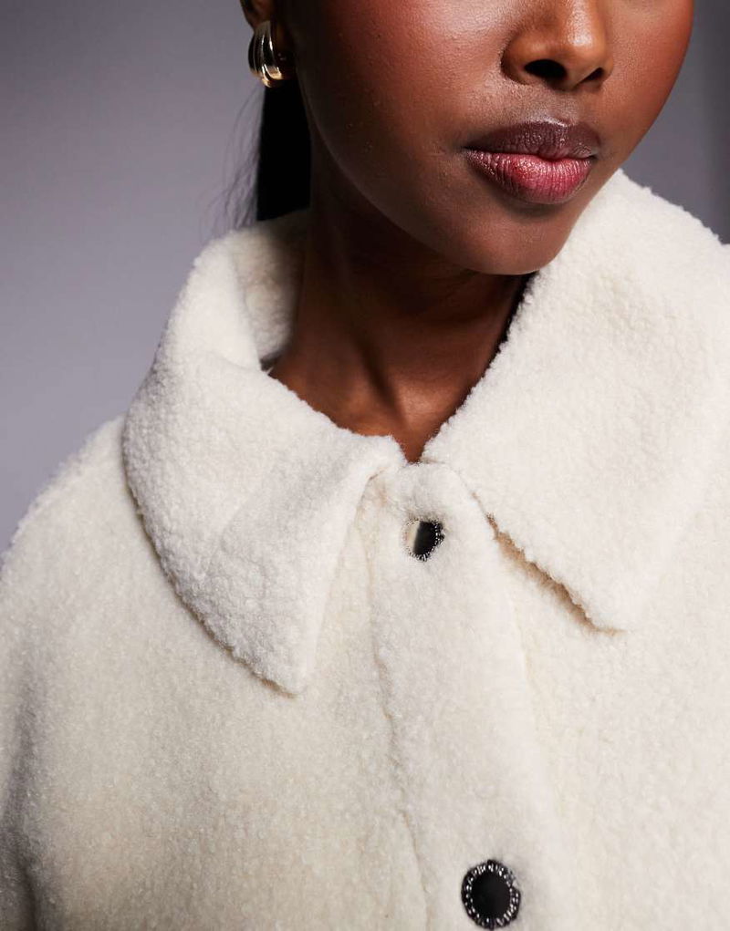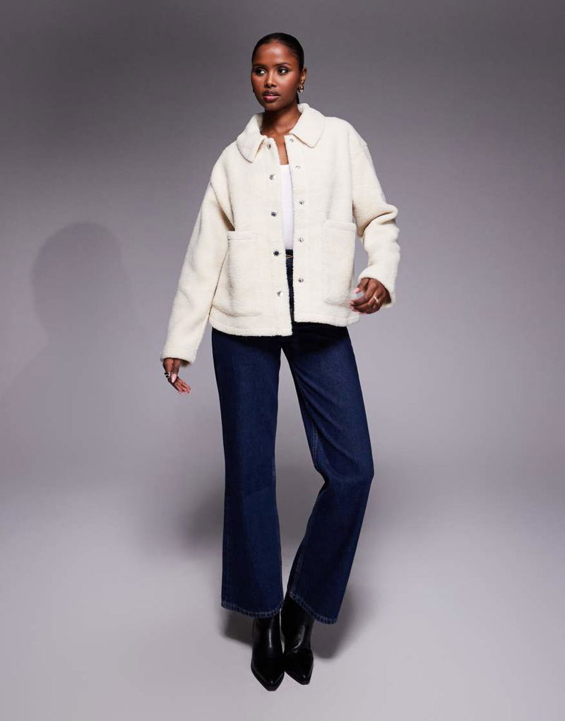 Rae fleece overshirt in bone white.