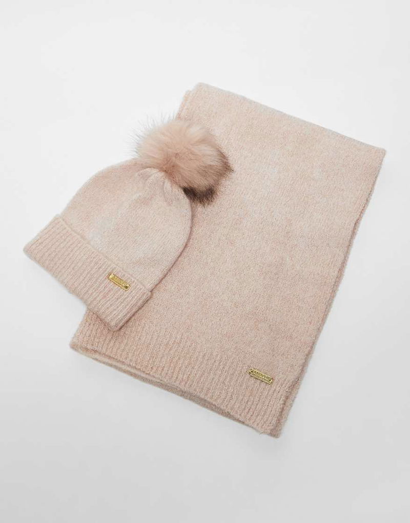 Novelty gifts by Barbour International. Includes a beanie and a scarf. Domed-crown beanie.