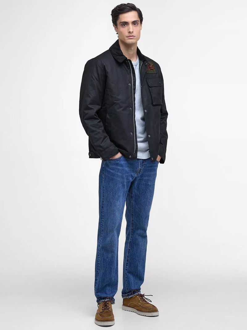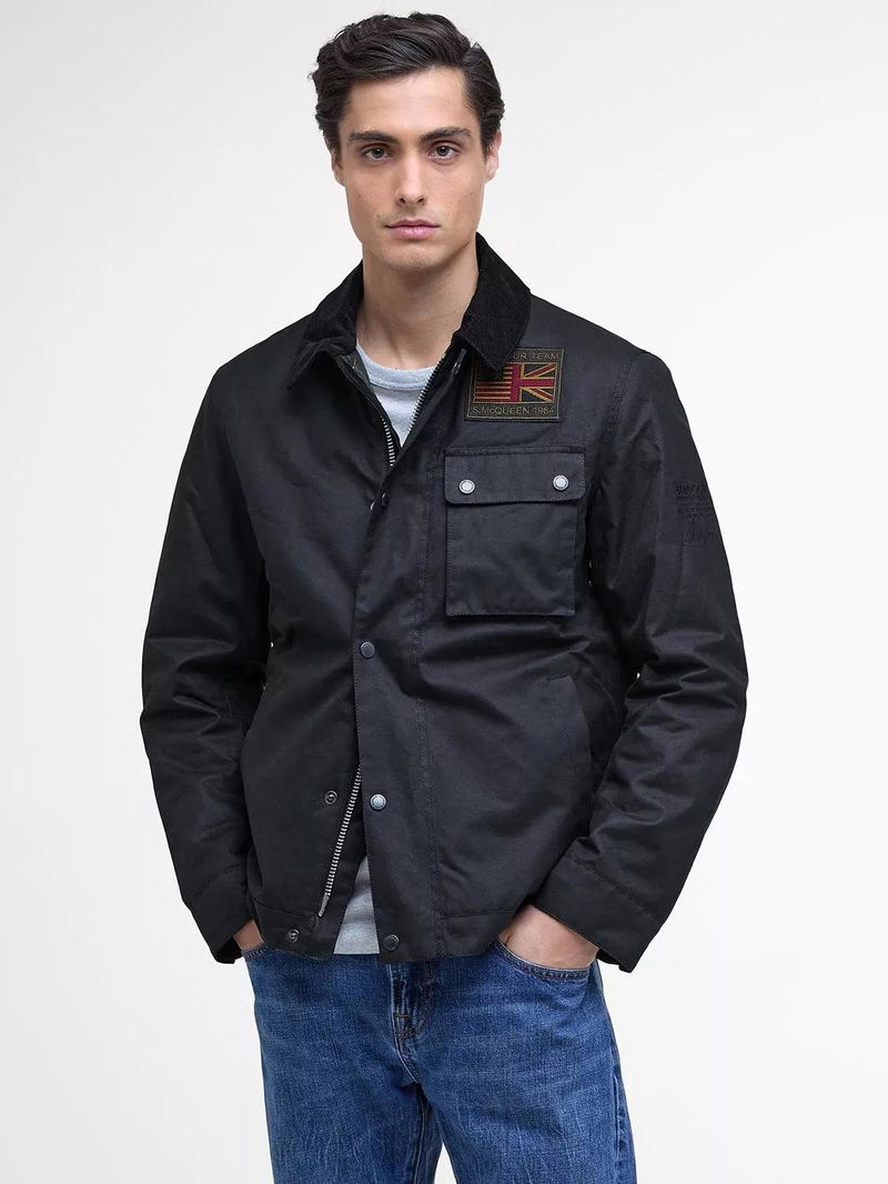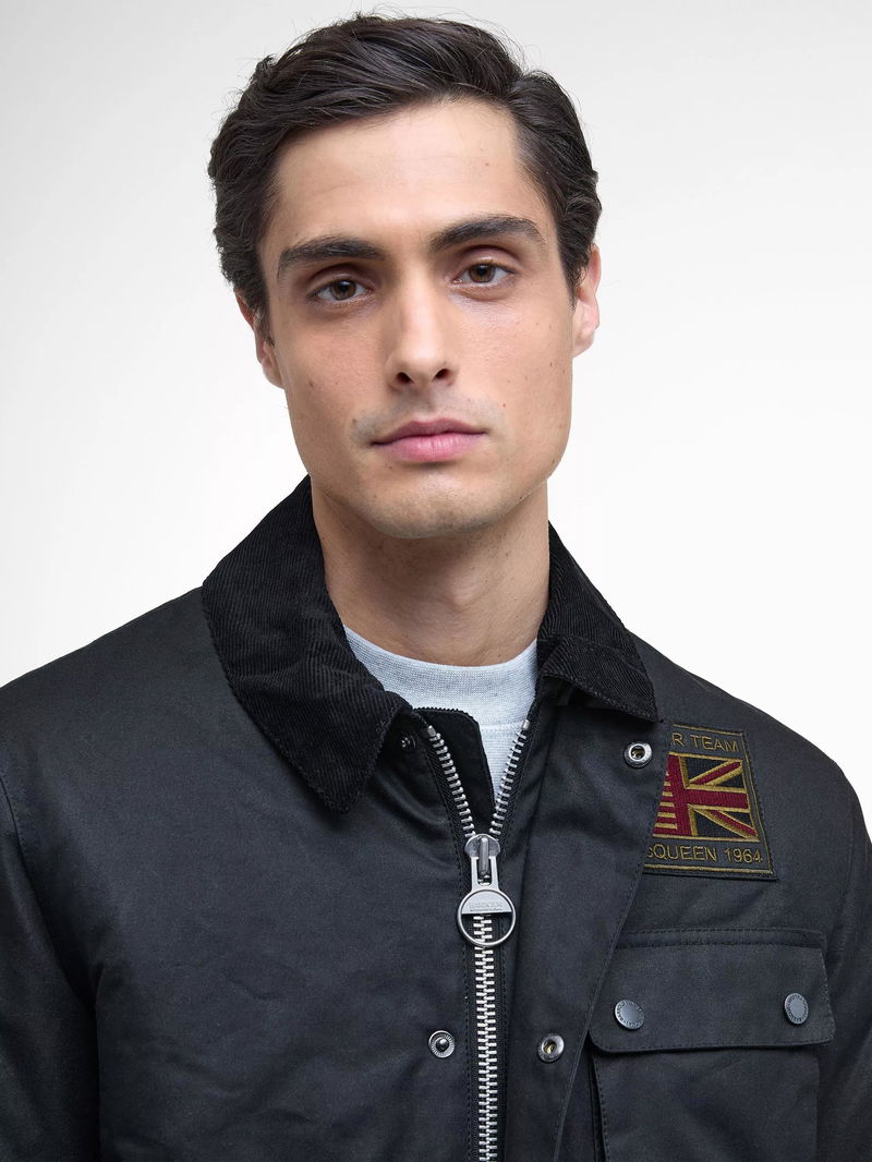 From the Steve McQueen collection, the Barbour International Workers Wax jacket adds a layer of subtle sophistication to any outfit, featuring square quilted lining for comfort and warmth as well as a corduroy collar for a complementary fabric contrast. A studded front placket conceals a zip for weather protection with adjustable cuffs and hem for the perfect fit. Two welt pockets and a studded chest pocket add useful storage space without foregoing style. A Barbour International Steve McQueen embroidery patch features to the wearer's left chest.
