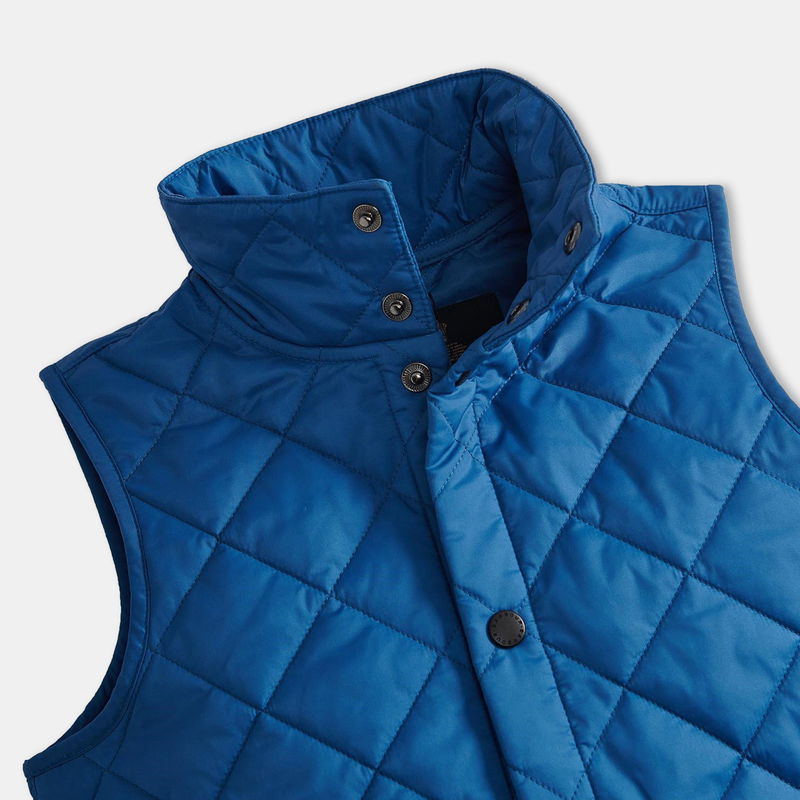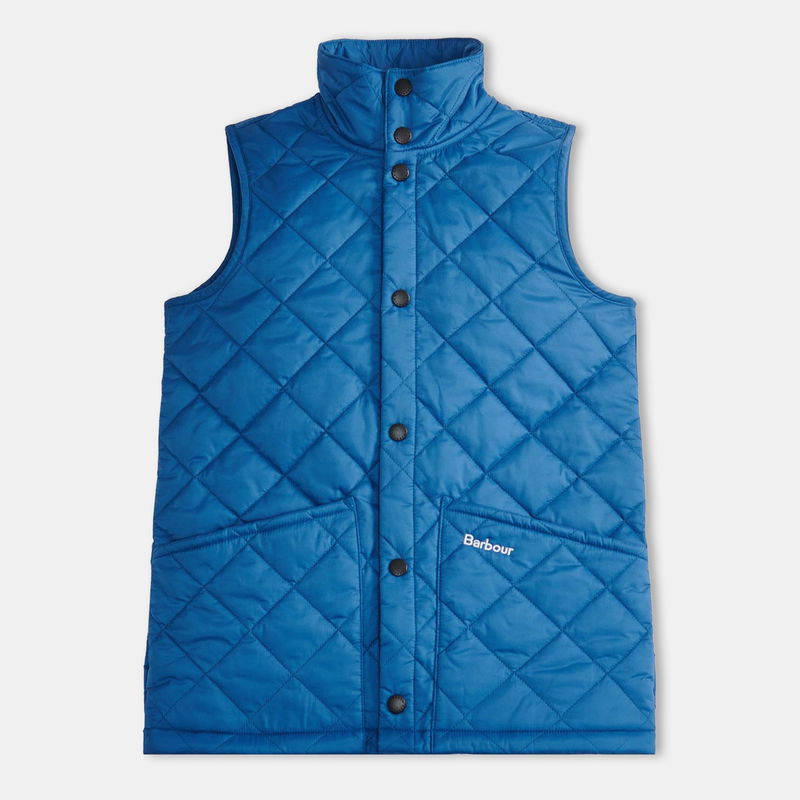 Barbour Kids' Liddesdale Quilted Gilet features a classic box quilted design with practical stud front fastenings. This sleeveless style includes a protective stand collar and lower patch pockets for essential storage.