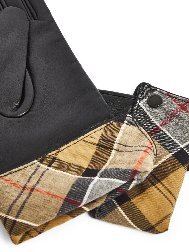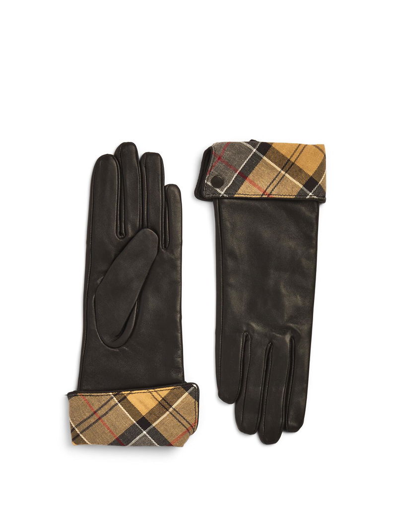 These elegant gauntlet-style gloves are created in rich leather with a lightweight fleece lining and a Barbour Tartan turnback cuff. An antique-effect stud and woven Barbour label add understated branding.