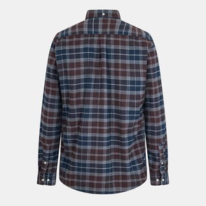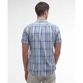 Stripe design Spread collar Button placket Short sleeves Chest pocket Regular fit.