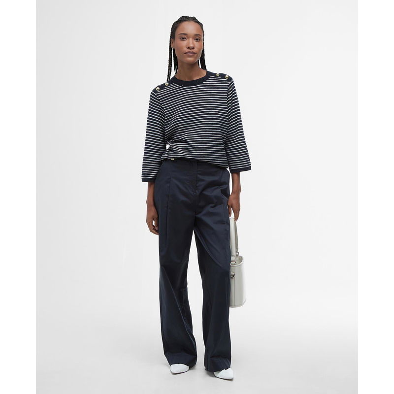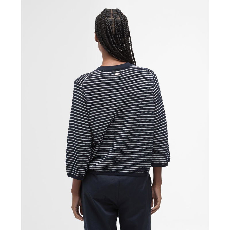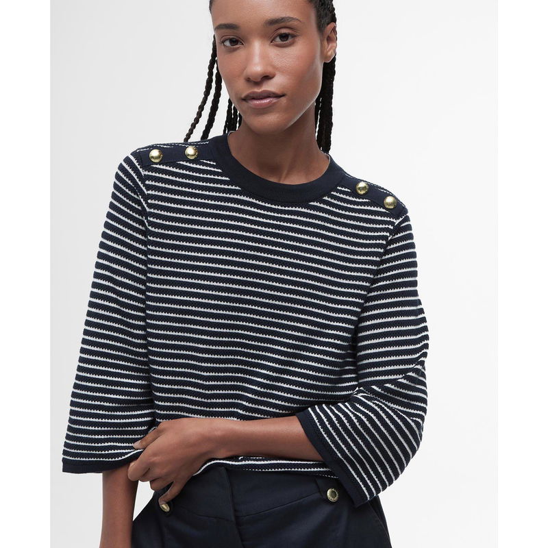 Elevate your wardrobe with Barbour's Macy Striped Crew Neck Jumper, a brand renowned for its high quality and British heritage. Featuring logo embellished detailing at the shoulders creating a symbol of authenticity and a stamp of approval. From daytime chic to evening affairs, this knit jumper is an essential piece.