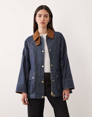 So classic with a playful touch, this relaxed cotton jacket from Barbour is featured in a cropped, boxy style with a bold check print and contrasting cord collar.