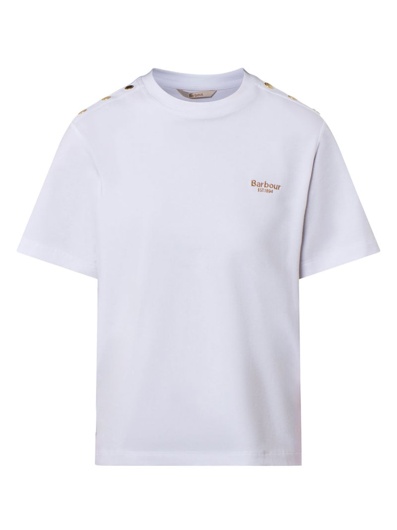 The Marla Cotton T-Shirt by Barbour delivers a soft, breathable feel with a timeless everyday silhouette. Subtle detailing elevates its simple form, making it a versatile base layer for year-round styling. An effortless wardrobe staple.