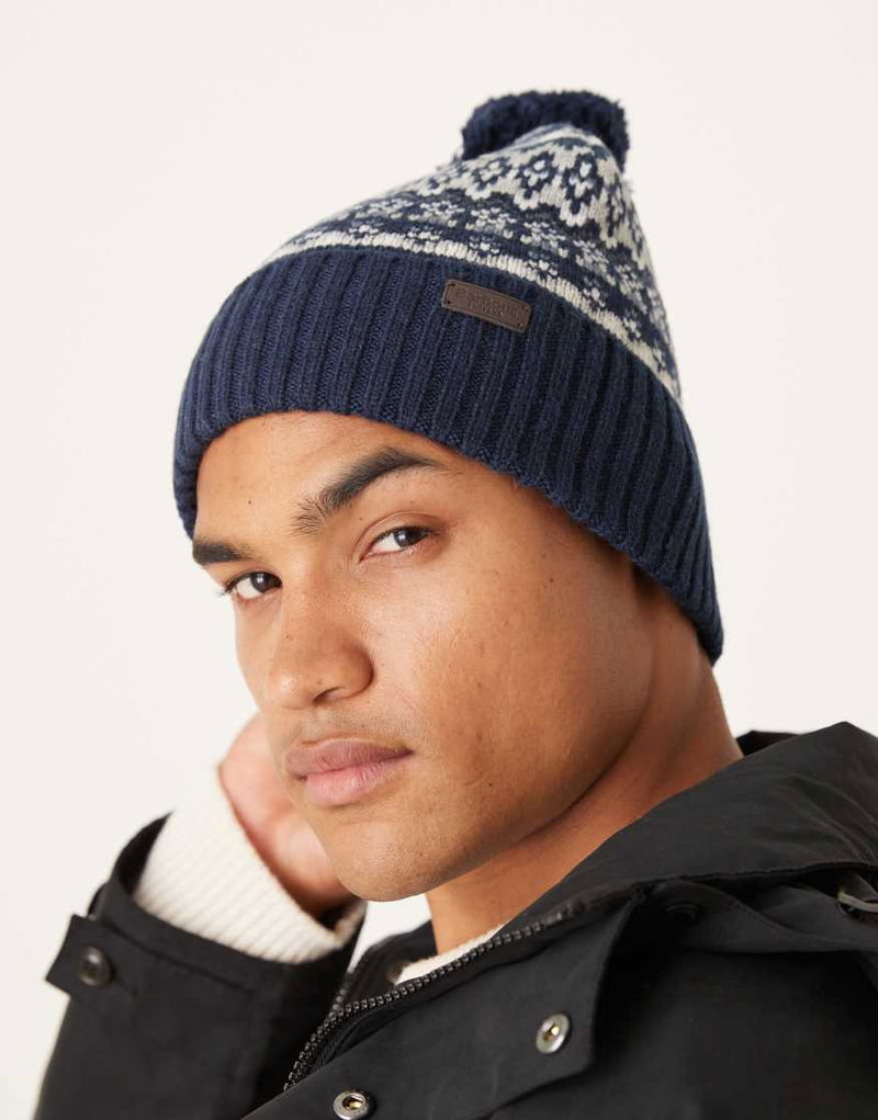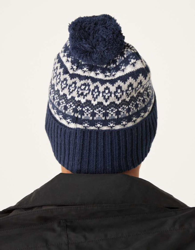Marlow Fair Isle Pom Beanie Hat In Navy