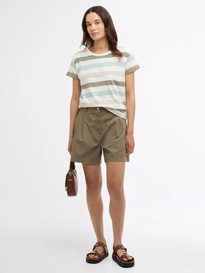 The Barbour Marnie Striped T-Shirt is a must-have style for laid-back days. This super-soft, yarn-dyed cotton t-shirt features short sleeves and dropped shoulders for a casual look, while the relaxed fit and woven logo patch the reverse ensures its made for everyday wear.