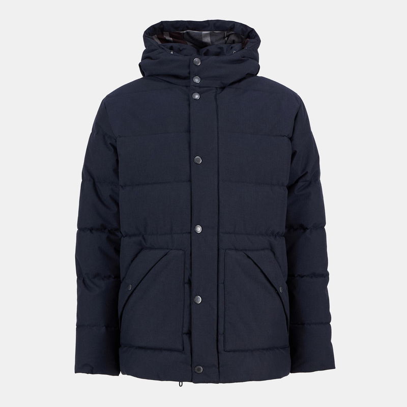 Barbour's Brampton Quilted Puffer Jacket delivers warmth with style. The mid-length quilted design features insulating padding with a fixed hood for reliable protection against the elements, while the concealed zip fastening ensures a clean, adjustable fit.